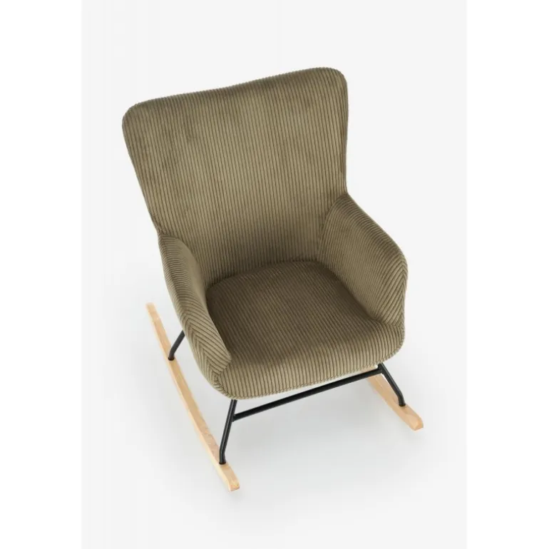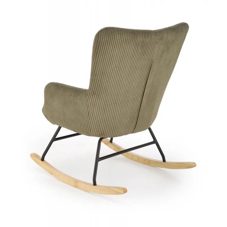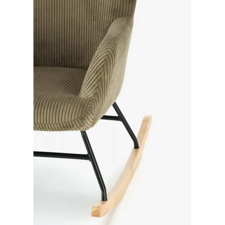 Oplev ultimativ komfort og stil med BELMIRO gyngestol i olivengrøn. Denne elegante stol kombinerer et stilfuldt design med fremragende funktionalitet, hvilket gør den til det perfekte valg til afslapning i hjemmet. BELMIRO gyngestol er fremstillet af høj kvalitet corduroy stof, pulverlakeret stål, og massivt træ, der sikrer holdbarhed og langvarig brug. Med dimensionerne 72/88/98/45 cm passer den perfekt ind i ethvert rum. Den olivengrønne farve tilføjer et strejf af elegance til din indretning. Perfekt til stuen, læsehjørnet eller terrassen.