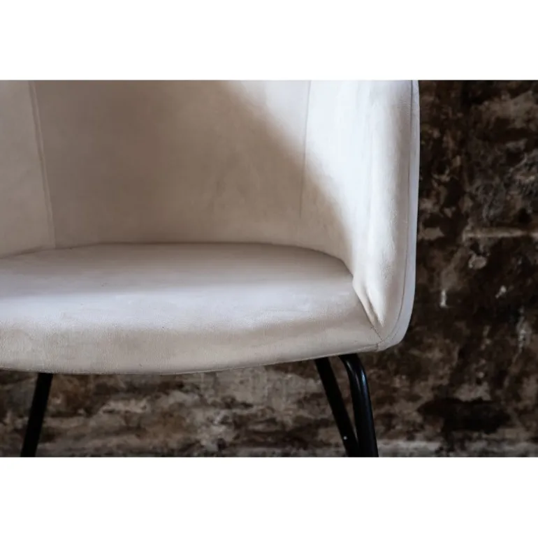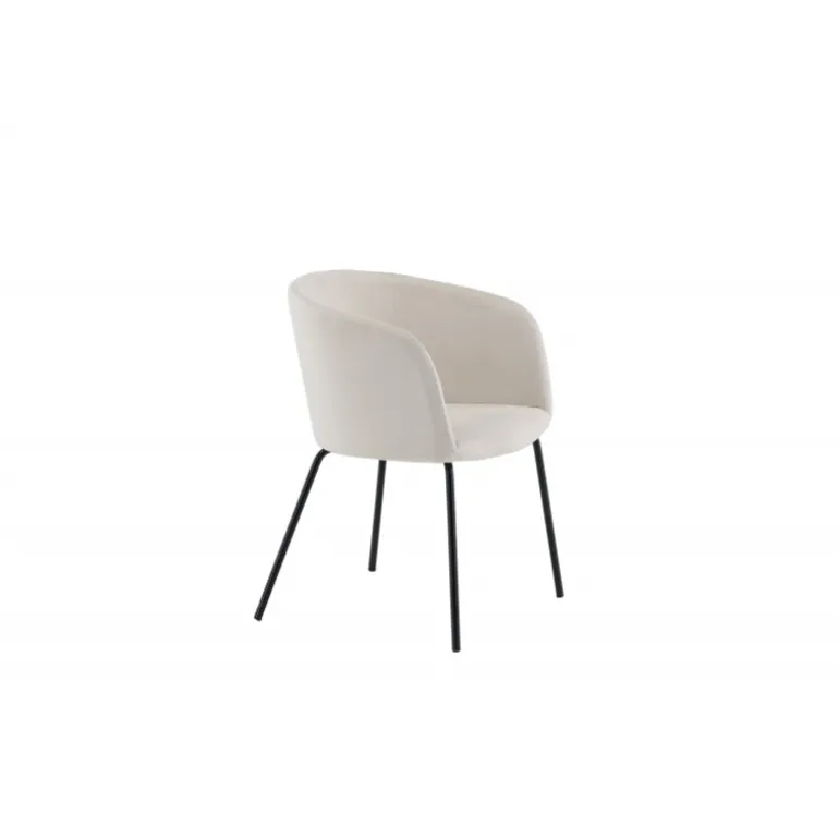 Skab et blikfang med en moderne stol fra Berit-serien i stilfuld beige farve! Denne spisebordsstol har et fuldt polstret design med en let rundet ryg og sæde i velourstof og polyesterlinned samt slanke ben i sort jern – garanteret lige så komfortabel som iøjnefaldende. Indret hjemmets hjerte indbydende og hyggeligt og nyd dejlige måltider sammen! Lettere samling kræves. Plejeråd: Velour har en tendens til at få trykmærker, når luven ligger ned. Trykmærkerne kan få stoffet til at se slidt ud, hvilket er helt normalt for denne type materiale. Afhængigt af hvordan lyset falder, kan stoffet ændre sig i forskellige nuancer.