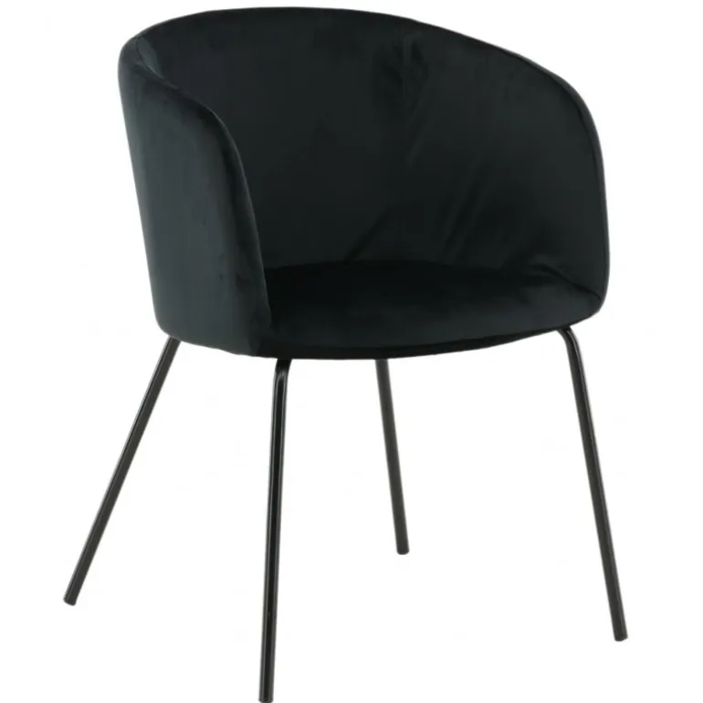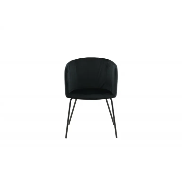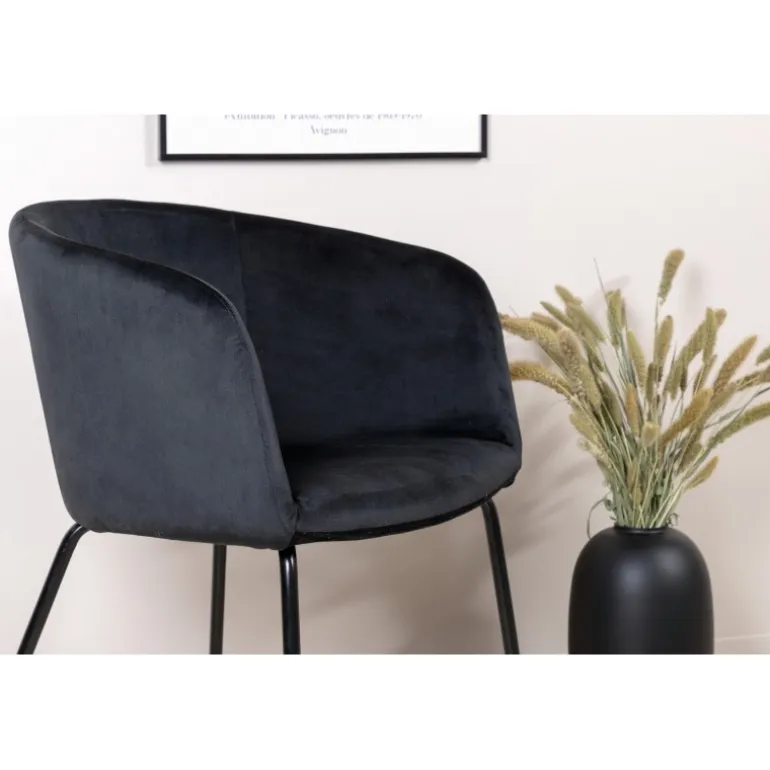 Indret hjemmets hjerte med en moderne, komfortabel og tidløs stol fra serien Berit i en iøjnefaldende sort farve! Denne spisestol har et fuldt polstret design med en let afrundet ryg og sæde i fløjlstof og polyesterlinned samt slanke ben i sort jern – garanteret både flot og behagelig. Skab et indbydende og hyggeligt udtryk og nyd dejlige måltider sammen! Lettere montering er påkrævet. Plejevejledning: Fløjl har en tendens til at få trykmærker, når luv ligger ned. Disse aftryk kan få stoffet til at se slidt ud, hvilket er helt normalt for denne type materiale. Afhængig af lysindfaldet kan stoffet ændre farve i forskellige nuancer.