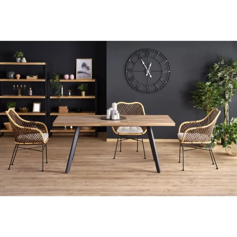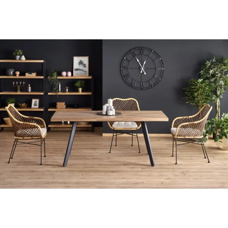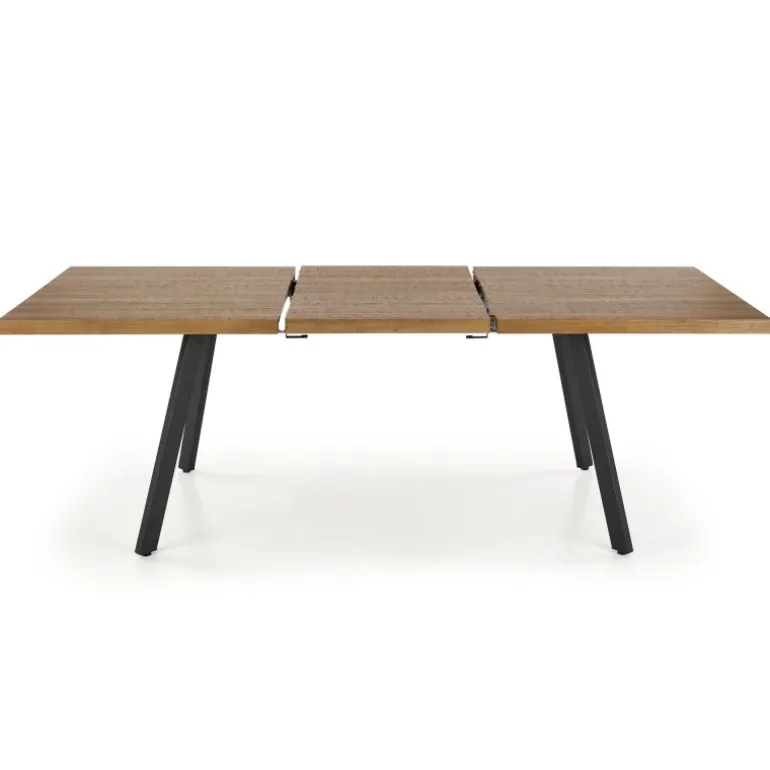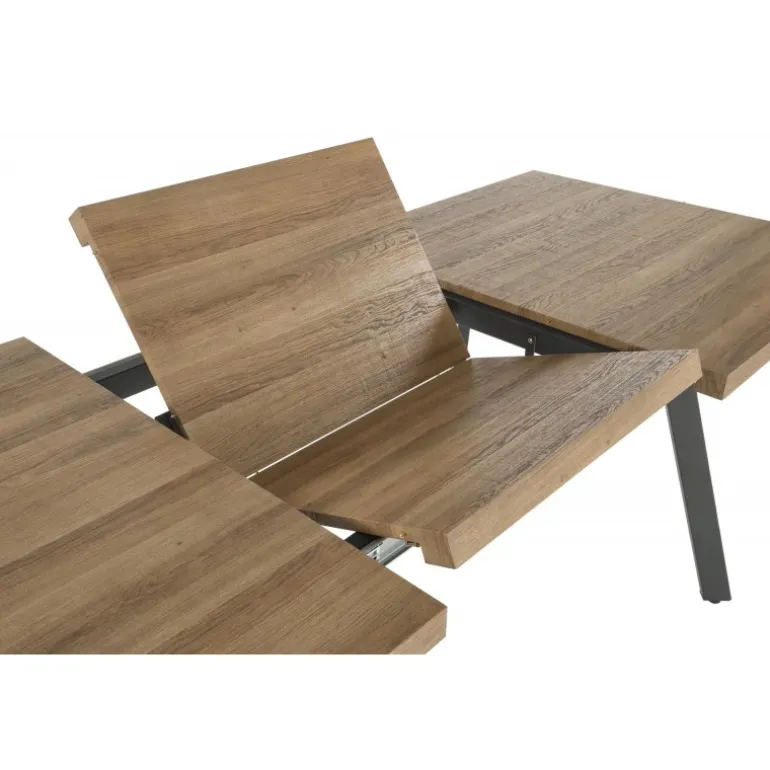 Oplev BERLIN Spisebord med udtræk, der kombinerer stil og funktionalitet. Bordet er fremstillet af lamineret MDF og pulverlakeret stål, hvilket sikrer holdbarhed og et moderne udseende. Med en justerbar længde fra 160 cm til 220 cm er dette bord ideelt til både hverdagsbrug og særlige lejligheder. Bordpladen har en smuk honning valnød farve, mens benene er elegant Sorte. For at bevare bordets udseende, skal du straks tørre det af, hvis der spildes væsker på overfladen.