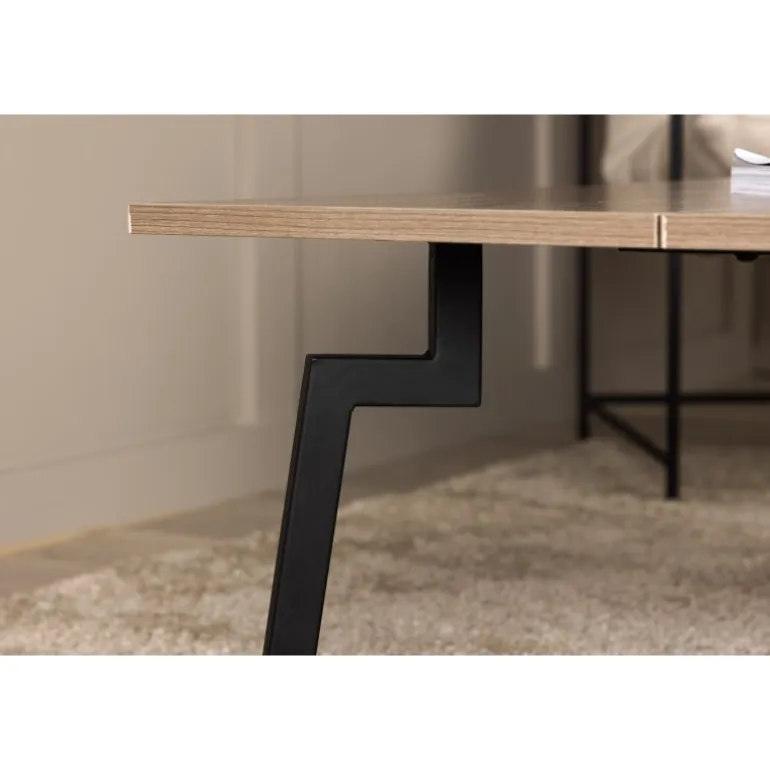 - Materialer af høj kvalitet: Valnødfarvet MDF-bordplade og sort stålunderdel sikrer langvarig holdbarhed.