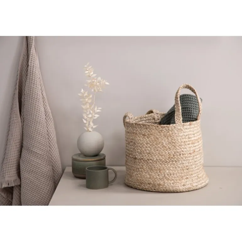 Denne smarte kurv klatrer på trendlisterne og er fantastisk til både opbevaring og som potte! Kurven tilhører serien Bhopal og er lavet af holdbar, flettet jute. Kurven har to håndtag i samme materiale, og det boheme look er lige så tidløst som moderens stil. Placer i badeværelset til håndklæder eller i stuen til interiørdetaljer – kun fantasien sætter grænser! Diameter: 35cm, højde: 28cm.