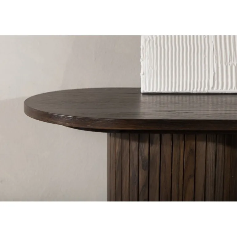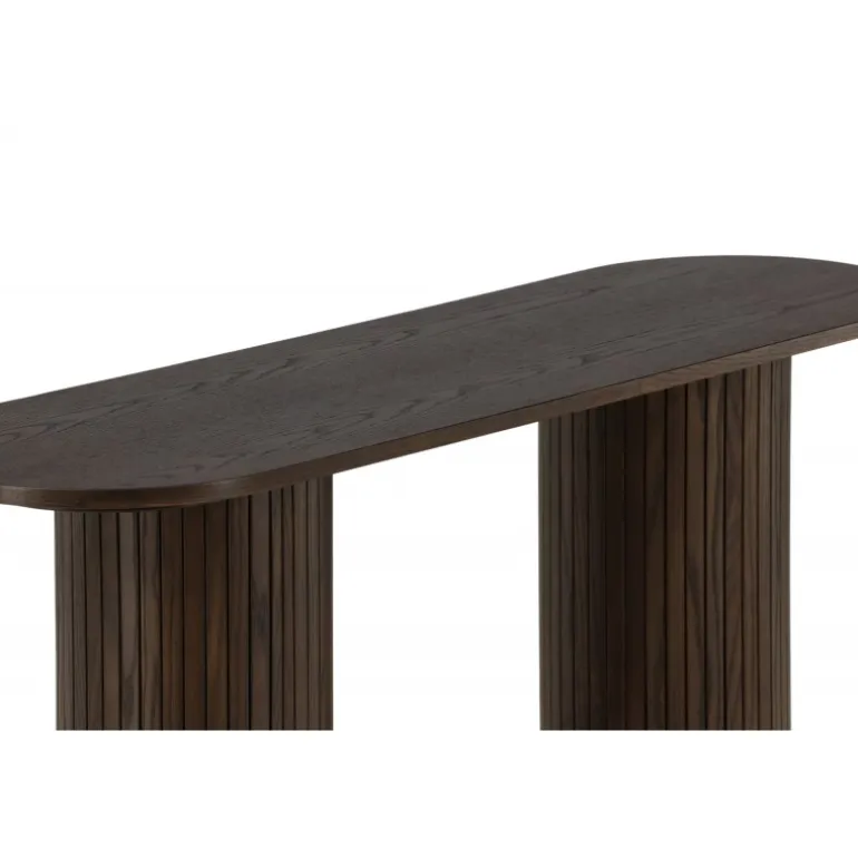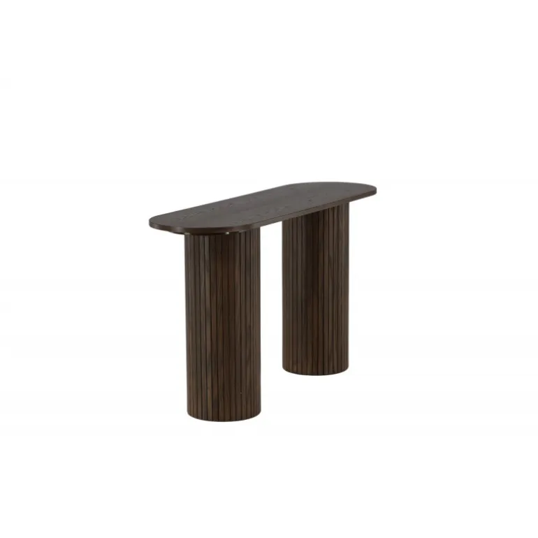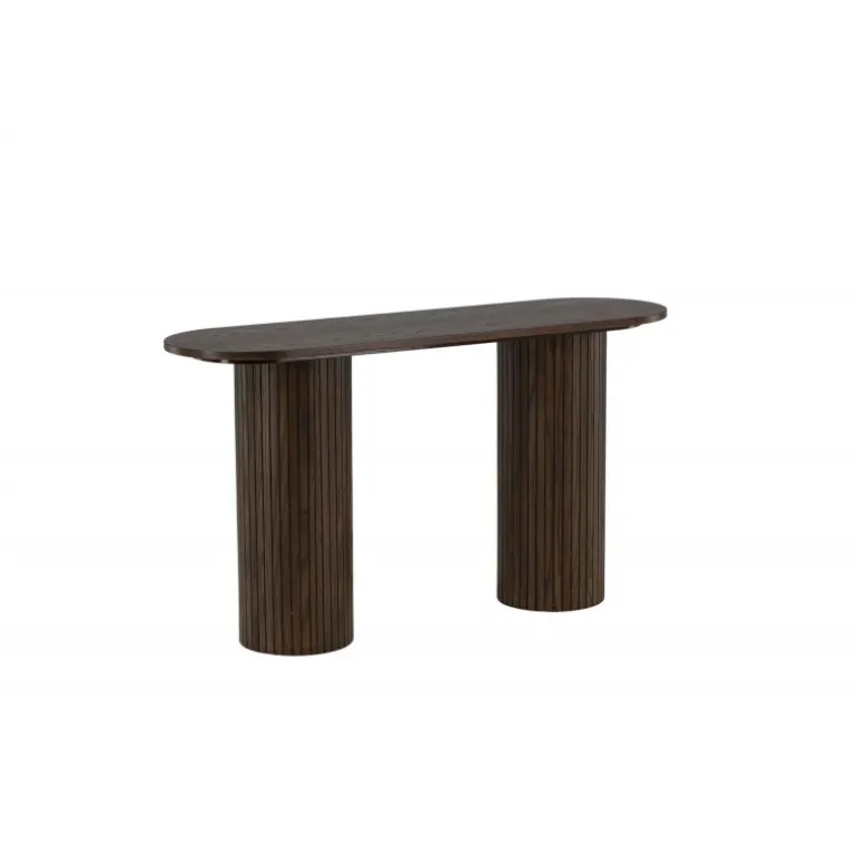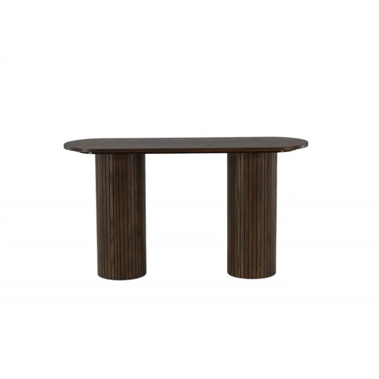 Giv stuen eller gangen et moderne løft med dette lækre Bianca konsolbord i en smagfuld udgave. Bordet er konsekvent lavet af MDF med finer i en mokkafarvet finish og har en robust ramme med to cylinderformede ben i ribbet design. Den gennemtænkte helhed med bløde nordiske former skaber en varm og moderne følelse i rummet. Bordet er lige så pænt som praktisk og helt i tråd med tidens trends – en perfekt tilføjelse til hjemmet!