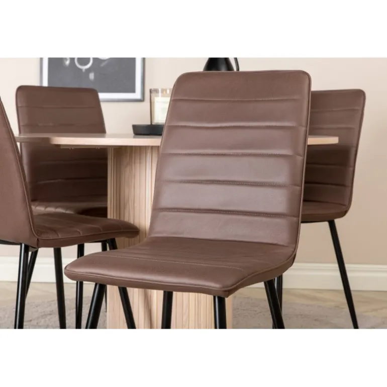 - Komfortable Stole: 4 Windu spisestole med sæder i brun mikrofiber og sorte jernben.