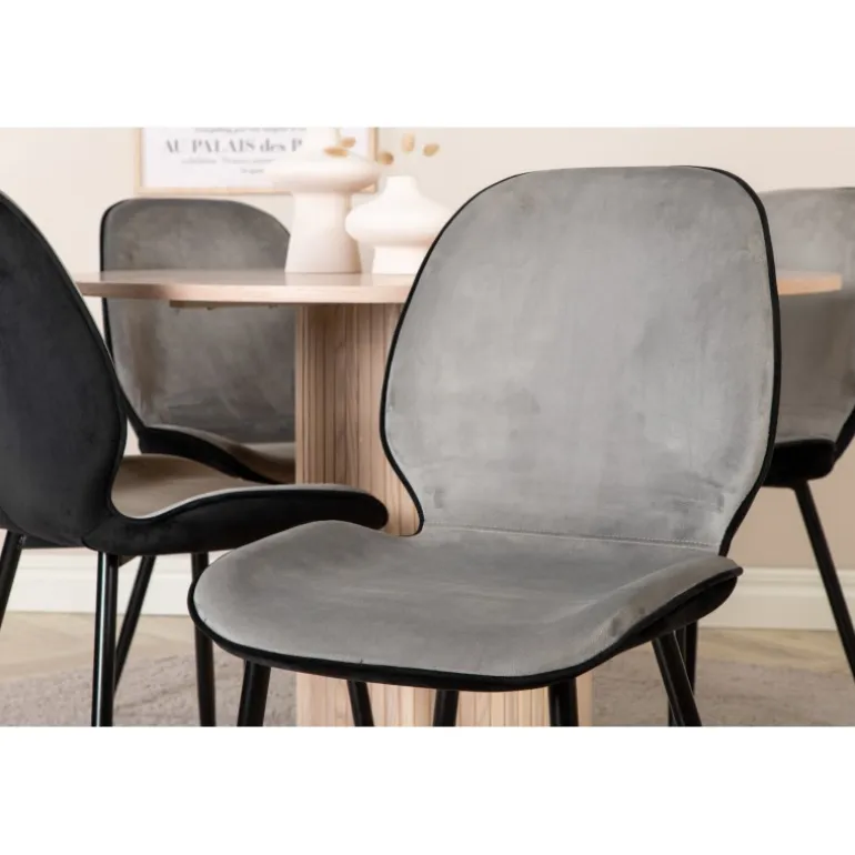 - Inkluderer 4 stilfulde Emma-stole med lysegrå og sorte veloursæder.