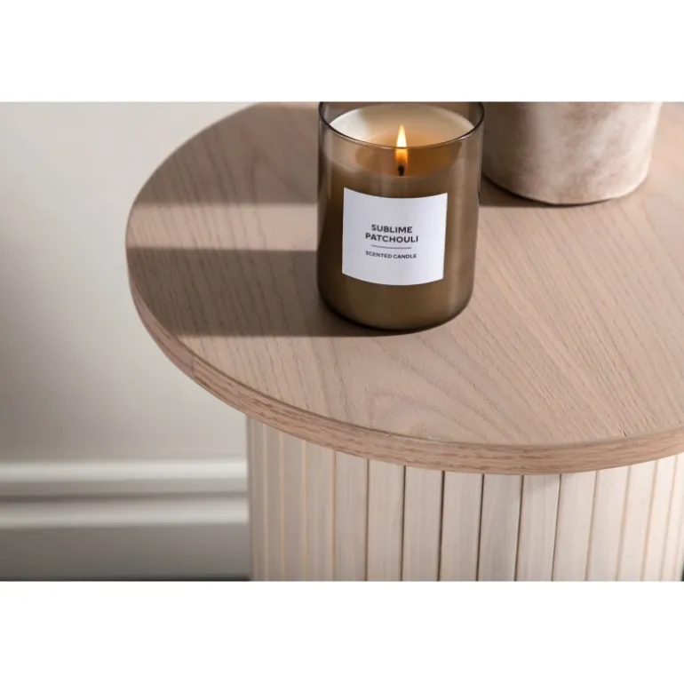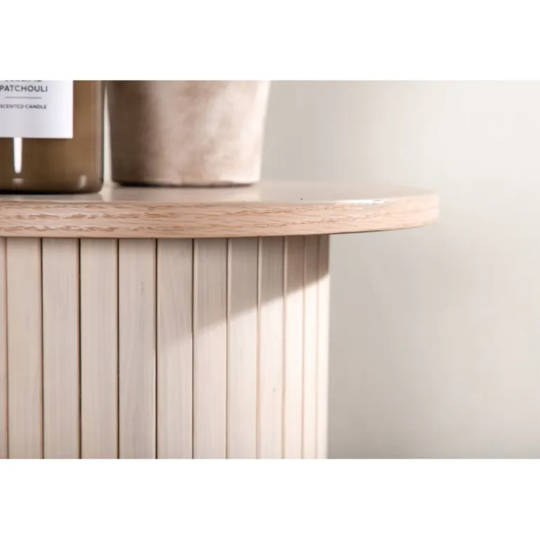 Et stilfuldt sidebord fra Bianca-serien, der er lige så smart som det er iøjnefaldende med sit trendsikre, skandinaviske design og mange anvendelsesmuligheder! Dette lækre sidebord tilhører Venture Home-kollektionen og er konsekvent udført i MDF med finer i en hvidvasket finish. Bordpladen er tynd i et rundt design, og kroppen er robust med cylindriske ben i rillet design. Den gennemtænkte helhed med bløde nordiske former skaber en varm og moderne følelse i rummet. Brug det som sidebord, aflastningsområde eller piedestal – kun fantasien sætter grænser!