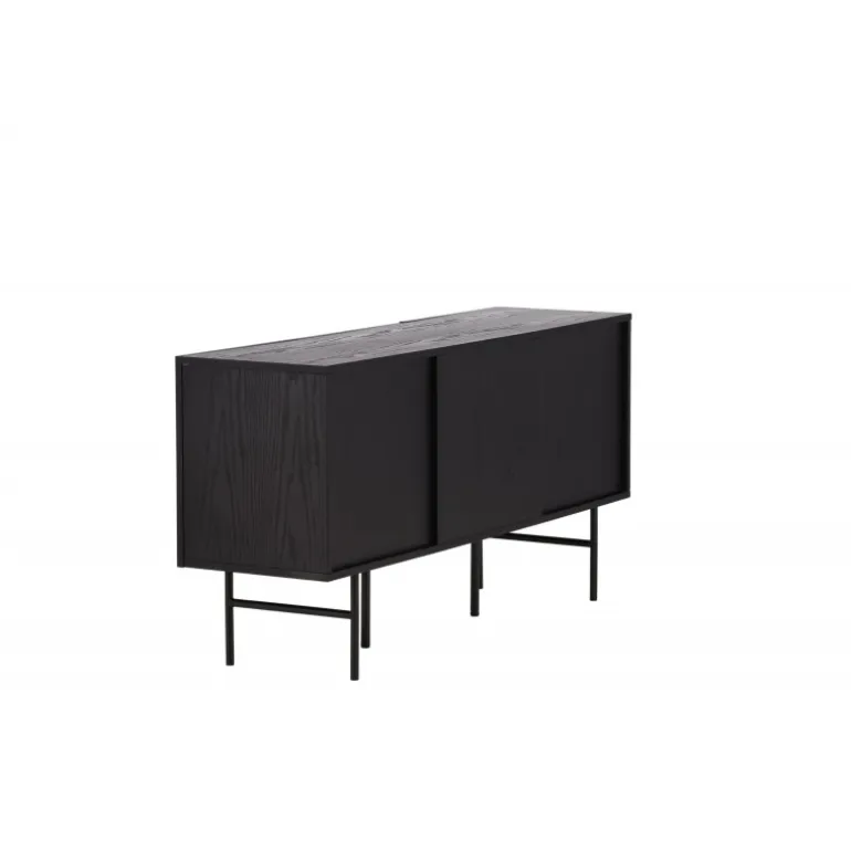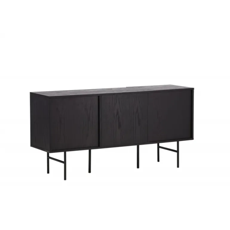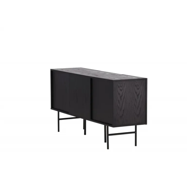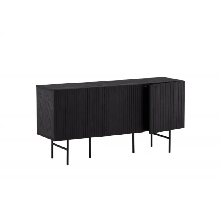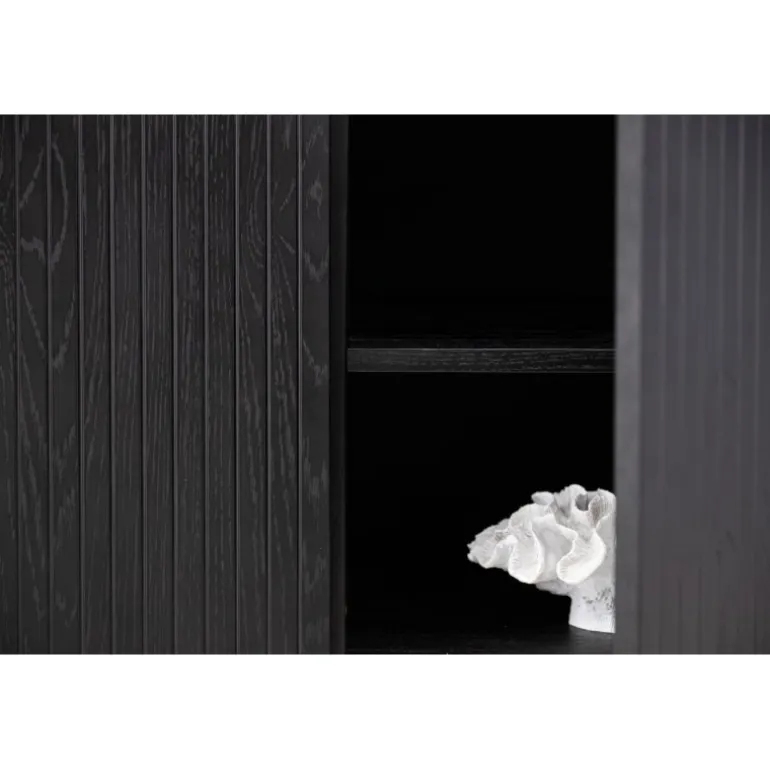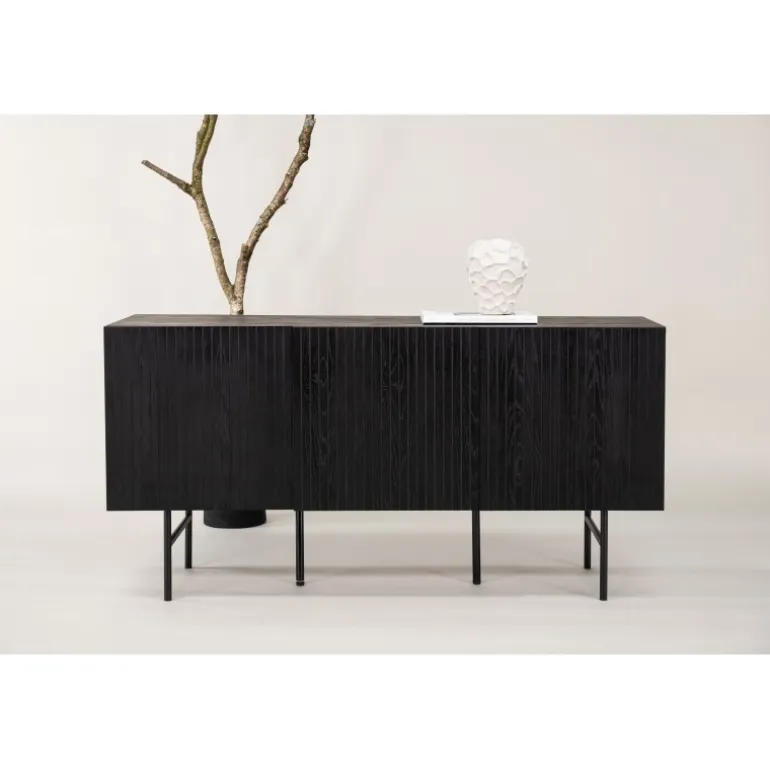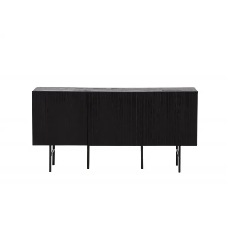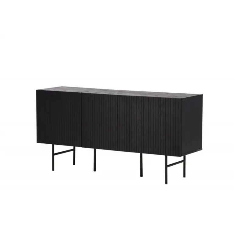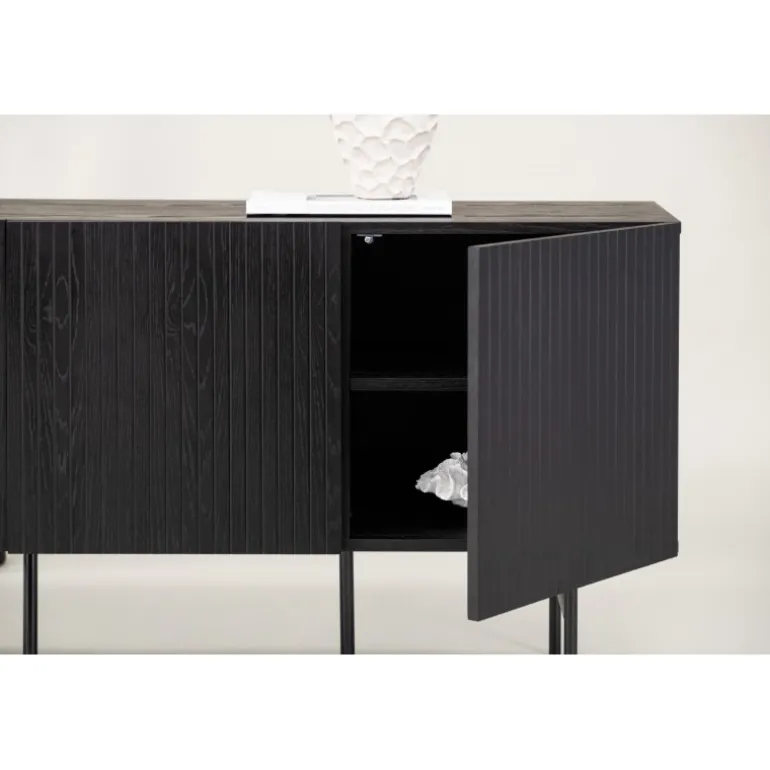 Det relief skab i skandinavisk design der klatrer på trendlisterne med sit stilfulde design! Skabet tilhører serien Bjorkon og kommer i forskellige farver og størrelser. Dette relief skab har tre rum i ribbet design med to hylder, der muliggør skjult opbevaring. Skabet er lavet af sort finer og løftes af smalle ben i sort stål. Brug det som et sidebord med smukke dekorationer og lysestager på eller som en TV-bænk i stuen. Her får du et møbel, der er både godt og smart!