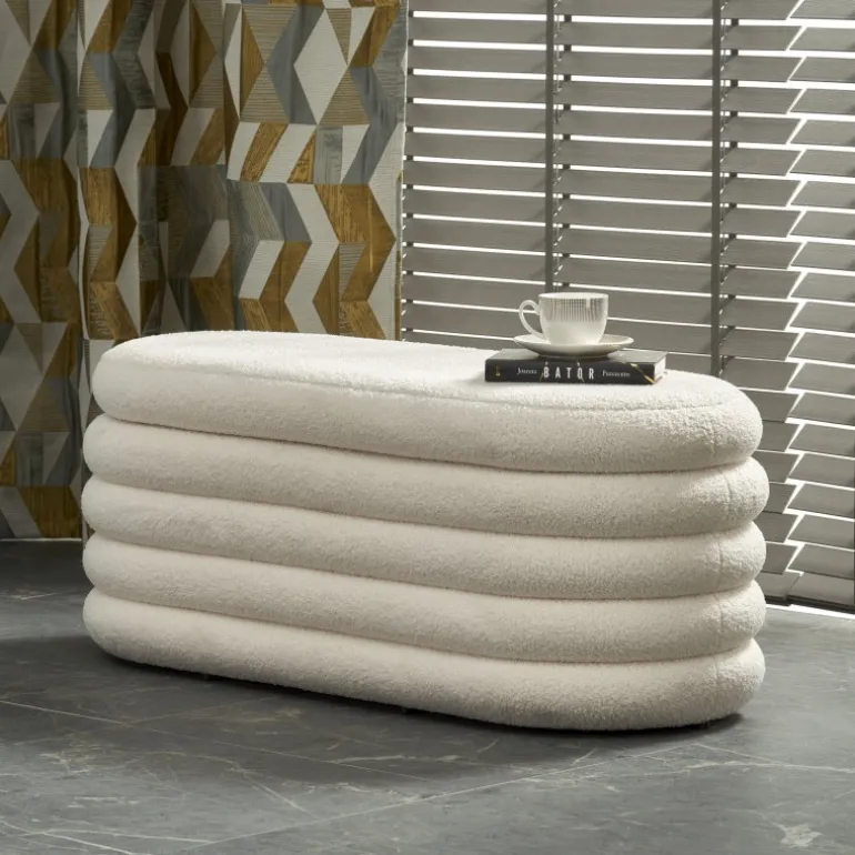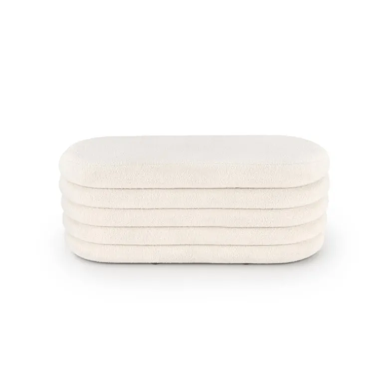 Oplev komfort og funktionalitet med vores BLISS bænk med opbevaringsfunktion. Denne elegante bænk er perfekt til ethvert hjem med sit moderne design og praktiske opbevaringsrum. Med målene 105/42/42 cm passer den nemt ind i forskellige rum, mens det bløde boucle-stof i cremefarvet tilføjer et luksuriøst touch. Ideel til entréen, stuen eller soveværelset, hvor den både kan bruges som siddeplads og til opbevaring af diverse genstande.