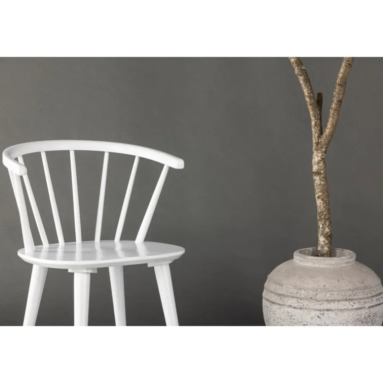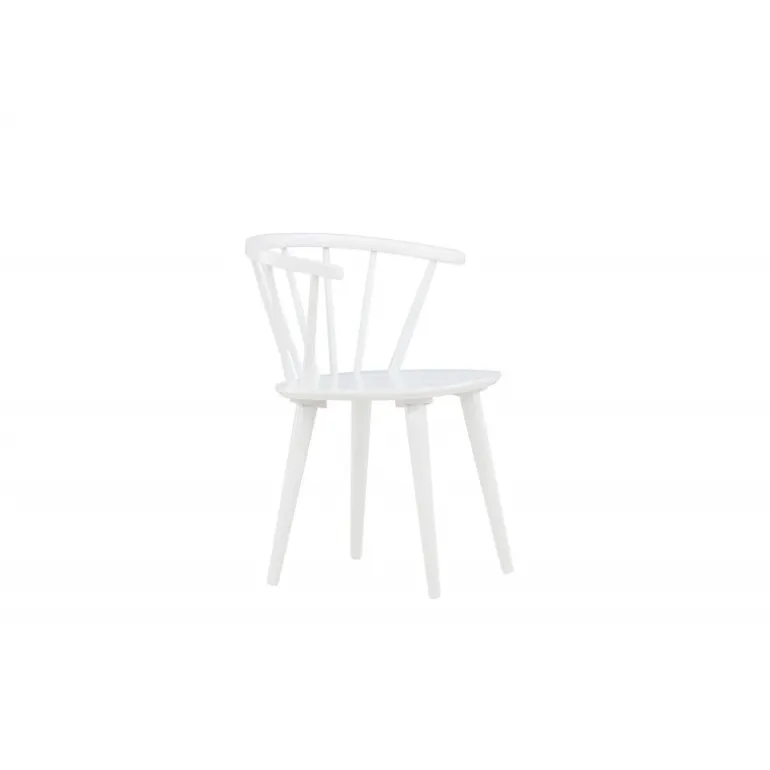 Bobby er en spisebordsstol lavet af gummitræ og i en hvid farve. Denne stol skaber en varm og indbydende atmosfære i rummet. Med sin bløde ryglæn tilbyder den en behagelig siddeoplevelse. Placer Bobby omkring spisebordet for at skabe en følelse af fællesskab og nærhed. Det skandinaviske design giver stolen en tidløs og elegant stil, mens den stadig er trendy og moderne. Den hvide farve på Bobby giver et friskt og rent æstetisk udtryk, der passer perfekt ind i forskellige indretningsstile. Uanset om dit hjem har en minimalistisk, vintage eller moderne design, vil Bobby komplementere og forbedre rummets atmosfære. Nyd behagelige måltider med familie og venner, mens du sidder i Bobby. Dens komfortable ryglæn giver støtte og komfort ved lange siddesessioner ved spisebordet. Du kan virkelig mærke følelsen af fællesskab og kammeratskab, som denne stol inspirerer til. Bobby er ikke blot en funktionel spisebordsstol; det er også en designdetalje, der færdiggør dit hjem. Lad den skandinaviske og trendy stil løfte din indretning og give rummet et friskt og moderne touch. Oplev komforten og skønheden ved Bobby – din nye favorit spisebordsstol, der kombinerer skandinavisk enkelhed, trendiness og en følelse af fællesskab.