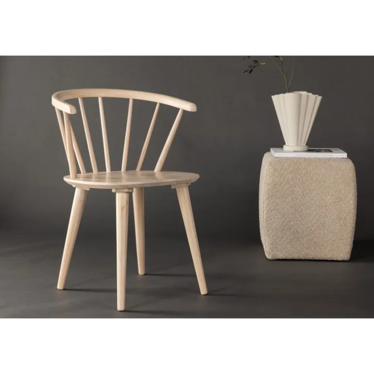 Bobby er en spisestol, der løfter dit hjem til nye højder med sin enkelhed og elegance. Denne hvidpigmenterede stol, lavet af gummitræ, passer perfekt ind i de fleste hjem og tilføjer et frisk og moderne touch. Den afrundede rygstøtte på stolen giver ikke kun visuel æstetik, men skaber også en følelse af ydmyghed. Det komfortable sædeområde tillader dig at nyde lange øjeblikke af afslapning og komfort. Placer Bobby rundt om spisebordet for at skabe en indbydende og elegant atmosfære under måltiderne. Du kan også placere den i hjørnet af stuen og tilføje en dekorativ pude for at skabe en hyggelig og hjemlig følelse i rummet. Bobby er mere end bare en stol – det er et statement-stykke, der vil få dit hjem til at skinne. Dens enkle og rene design gør det nemt at kombinere med forskellige indretningsstile. Lad Bobby blive den perfekte tilføjelse til dit hjem og give rummet et stilfuldt touch. Oplev komforten og følelsen af ydmyghed med denne fantastiske stol. Bobby – din nye favoritstol, der vil opgradere dit hjem.