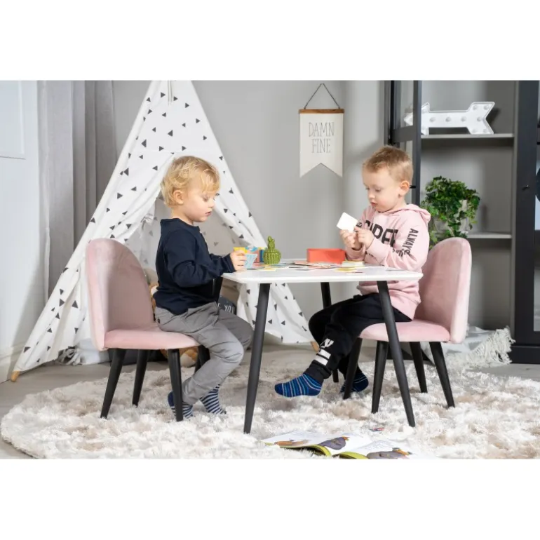 Dette smukke og praktiske Spisebordssæt fra Polar er perfekt til børn. Bordet kommer i fine farver og har en robust bordplade i MDF. Stole fra Velvet tilføjer et elegant touch med deres bløde polyester velour. Perfekt til både leg og spisning, dette sæt skaber en hyggelig og indbydende atmosfære.