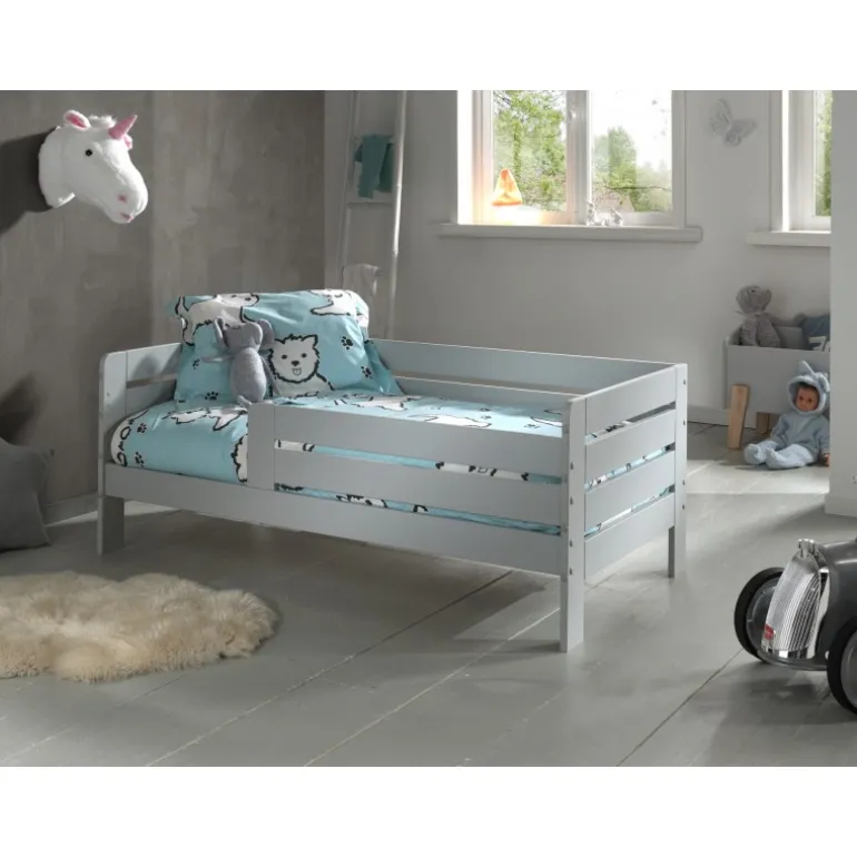 Børneseng 70 x 140 cm – grå juniorseng i massivt fyr (TOD)