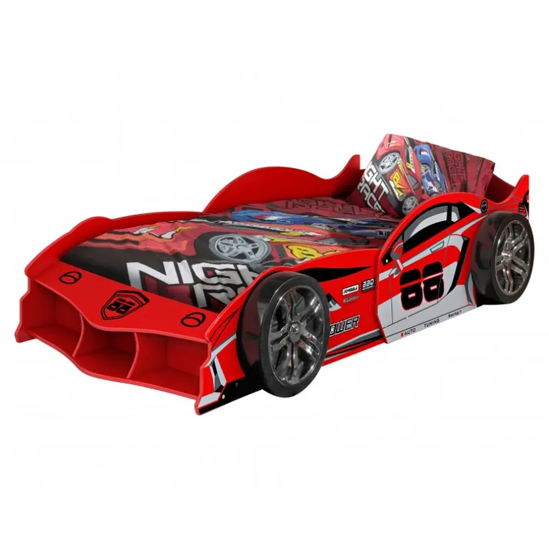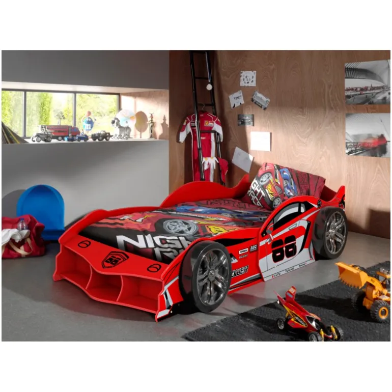 - Sporty bilseng i rød med realistiske detaljer