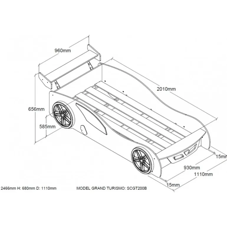 Børneseng bil – Grand Turismo, 90 × 200 cm, blå