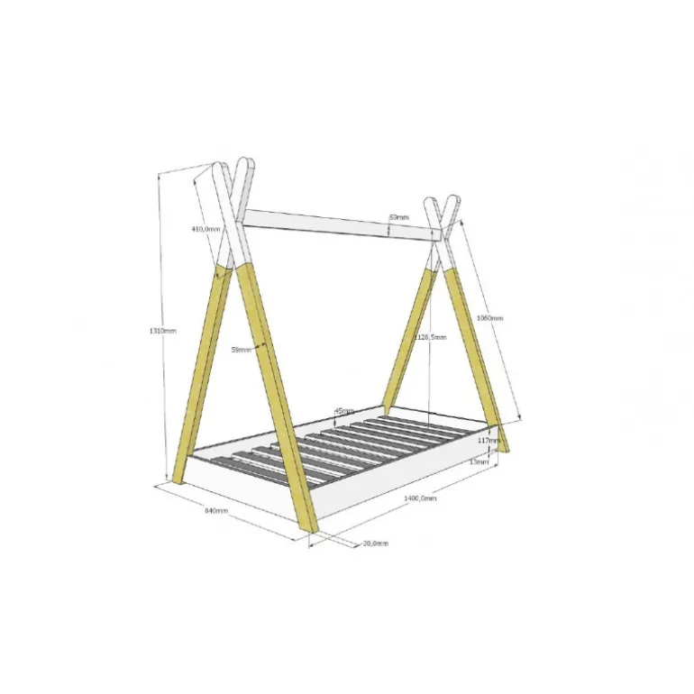 Børneseng tipi 70 x 140 cm – natur/hvid