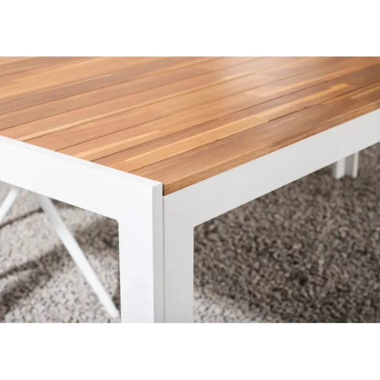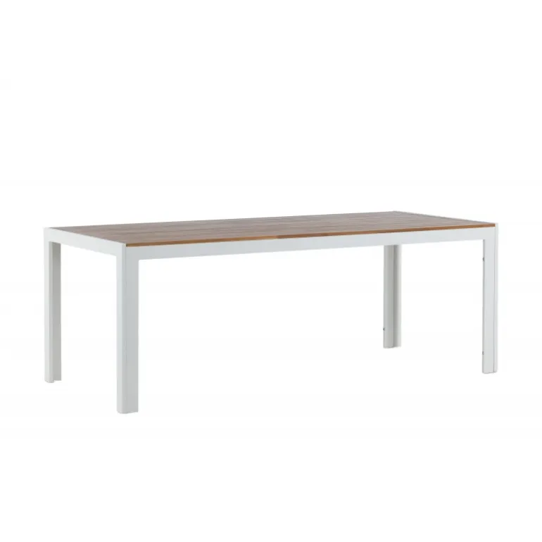 Bois Bord imponerer med sine lige nordiske former og klassiske design! Bordpladen er lavet af dekorativ akacie, og bordbenene er i stilfuldt hvidt metal. Kombiner med nogle lækre spisebordsstole for at få en komplet Loungesæt – Havemøbelsæt, hvor du kan samle venner og familie – gør dig klar til måltider udendørs og nyd hyggeligt selskab denne sommer! Vedligeholdelsesråd: For at dine udendørsmøbler i akacie/hårdttræ kan bevare deres finish, bør de behandles med olie. Da træet i sig selv ikke er særligt fedtholdigt af natur, skal det olieres lidt nu og da, selv i sæsonen. Nyindkøbte møbler bør mættes med olie, påfør flere lag i træk, så træet maksimerer absorptionen af olie. Aftør overskydende olie.