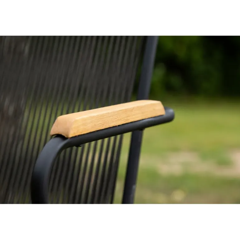 - Komfortabel: Teak armlæn og sort reb sæde sikrer maksimal komfort.