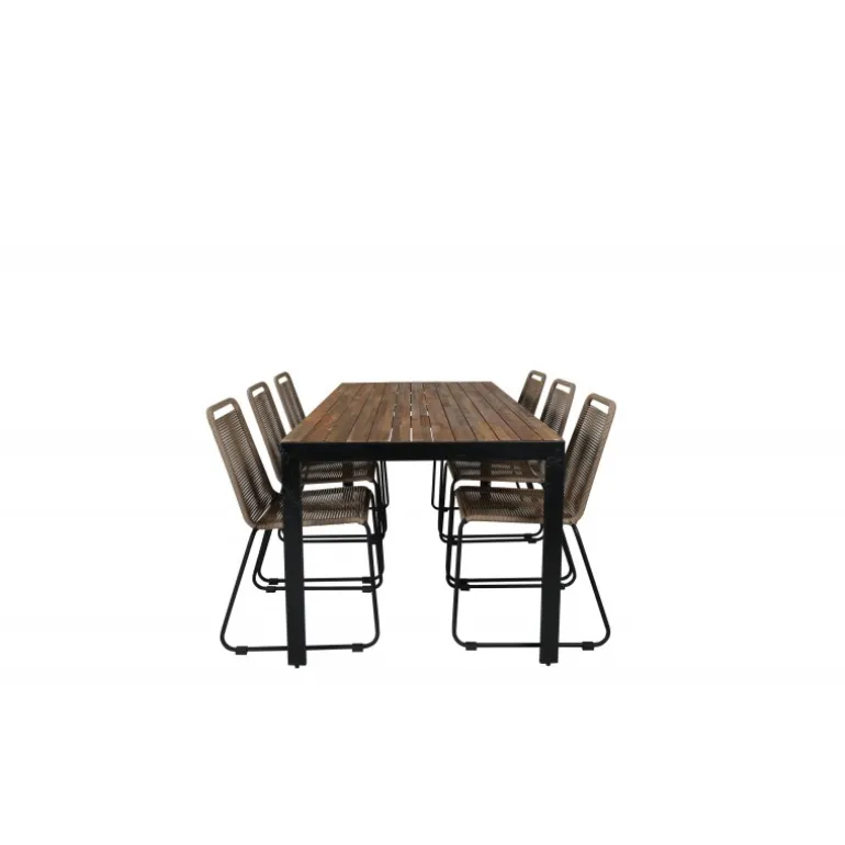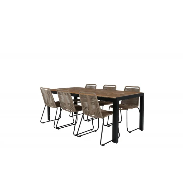 Lad dette smukke og moderne Loungesæt – Havemøbelsæt blive et naturligt samlingssted i din udendørs plads. Spisestolene Lindos tilbyder god komfort, og spisebordet Bois sikrer, at der er plads til alle. Rektangulær Loungesæt – Havemøbelsæt i akacietræ og aluminium, perfekt til enhver have eller terrasse.