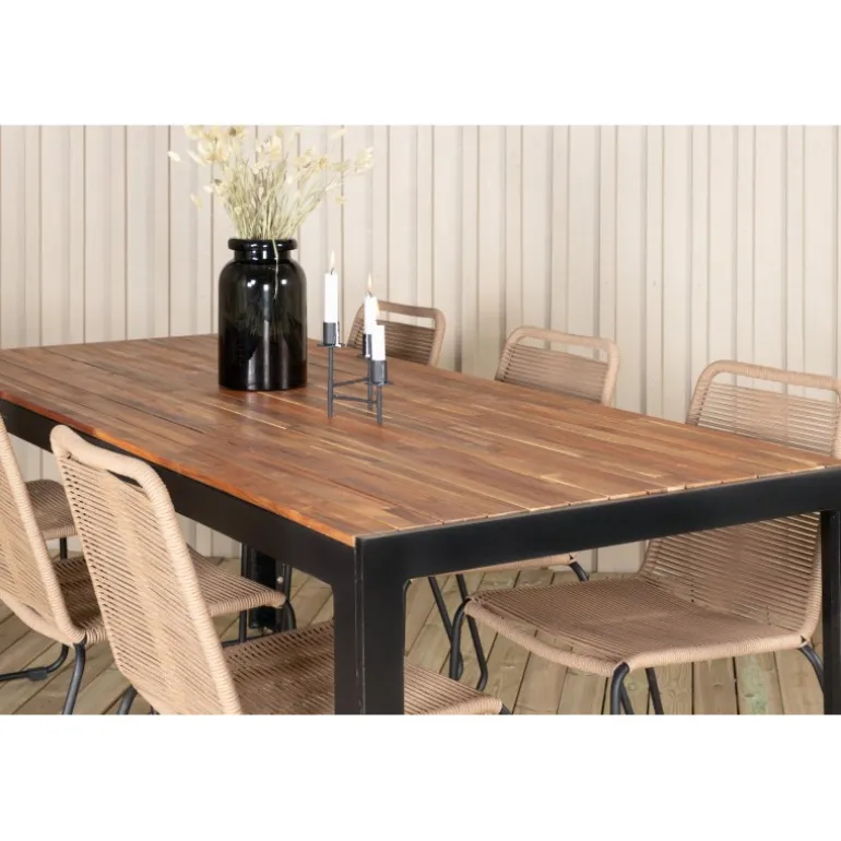 - Størrelse: Bord: 76x205x90 cm, Stol: 59x86x57 cm