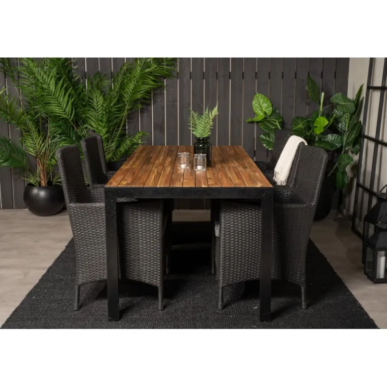 Opgrader din udendørs spiseoplevelse med Bois Rektangulær Loungesæt – Havemøbelsæt. Dette trendy Loungesæt – Havemøbelsæt er ideelt til terrassen og kombinerer en klassisk spisebord med en lækker træbordplade og moderne Malin spiseborde. Lad din terrasse pryde af dette iøjnefaldende Loungesæt – Havemøbelsæt og nyd de sene sommeraftener!