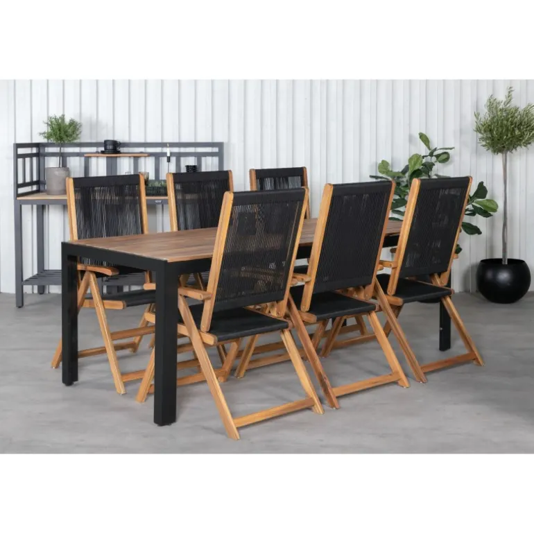 - Holdbare materialer: Fremstillet af acacia, aluminium og polyester reb, der sikrer lang levetid.