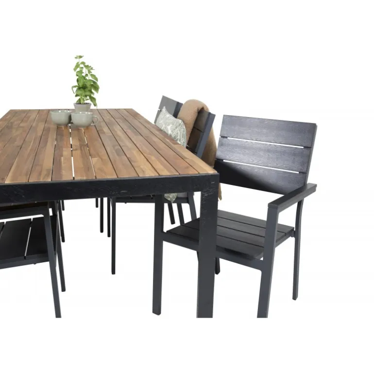 Klassisk Loungesæt – Havemøbelsæt, der passer til de fleste terrasser! Spisebordet Bois sammen med stole i serien Levels – bliv klar til udendørssæsonen med os! Dette Loungesæt – Havemøbelsæt kombinerer holdbarhed og æstetik med materialer af høj kvalitet som acacia, aintwood og aluminium. Det er en perfekt løsning til dine udendørs middage.