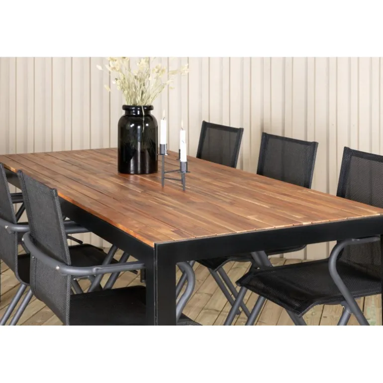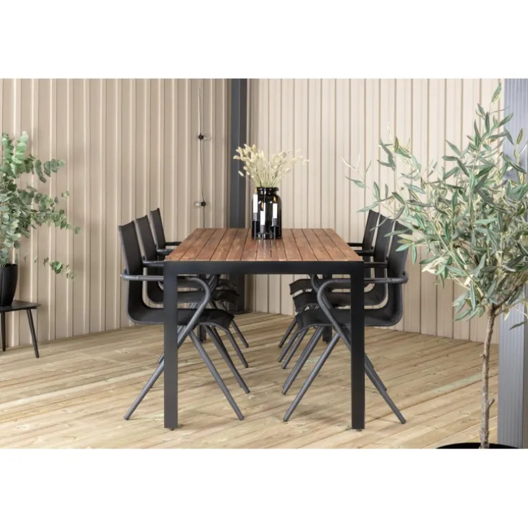 Oplev Bois Rektangulært Loungesæt – Havemøbelsæt – det perfekte valg til din udendørs spiseoplevelse. Dette moderne og stilfulde sæt består af BoIS spisebord og Alina spisebordsstole, hvilket skaber en harmonisk kombination til dit udendørs rum. Uanset om du nyder en hyggelig middag med familien eller en festlig sommerfrokost med vennerne, vil dette sæt opfylde dine behov og passe perfekt ind i din eksisterende indretning.