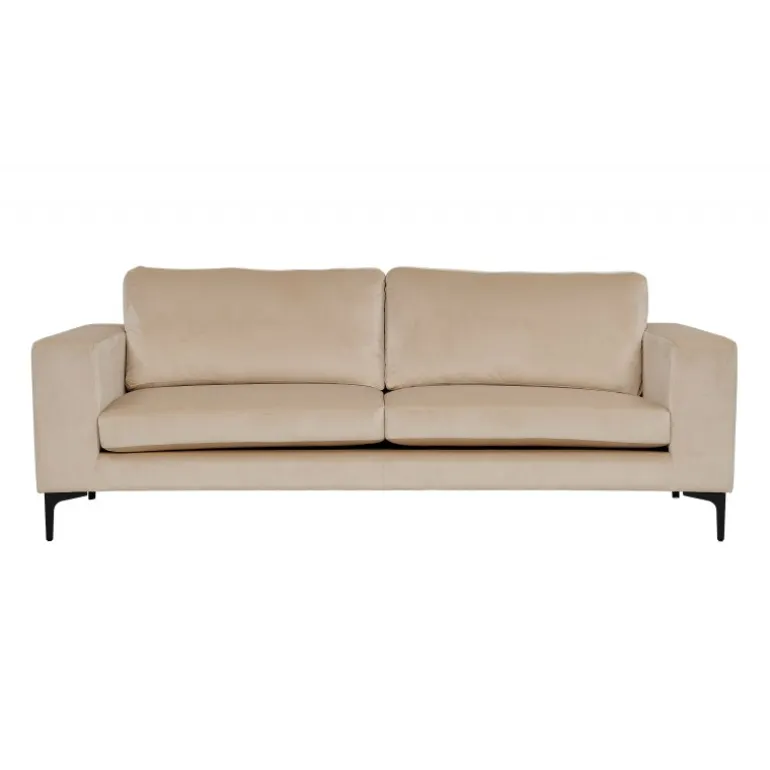 Bolero er en stilfuld sofa serie med skandinaviske elementer og høj siddekomfort! Designet er lige og enkelt med brede armlæn, der giver vægt til designet og den flade overflade fungerer godt som en afsætningsflade. Det moderne beige fløjl giver en elegant følelse i dit hjem, og de smalle cylindriske ben bidrager til et stilfuldt indtryk. Skab en øjenfanger, der er både varm og indbydende. Plejeråd: Fløjl har en tendens til at få trykmærker, når luven ligger ned. Imprintene kan få stoffet til at se slidt ud, hvilket er helt normalt for denne type materiale. Afhængigt af hvordan lyset falder, kan stoffet ændre sig i forskellige nuancer.