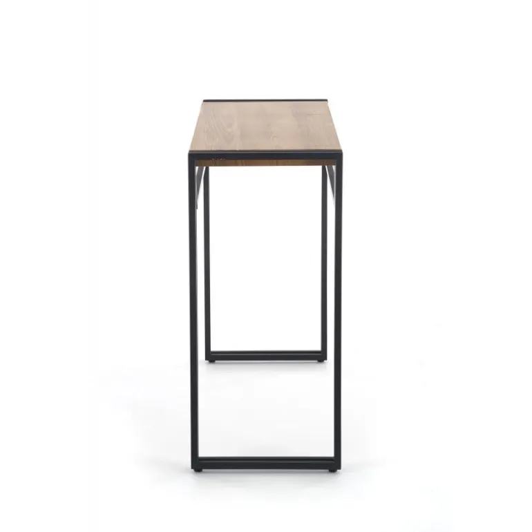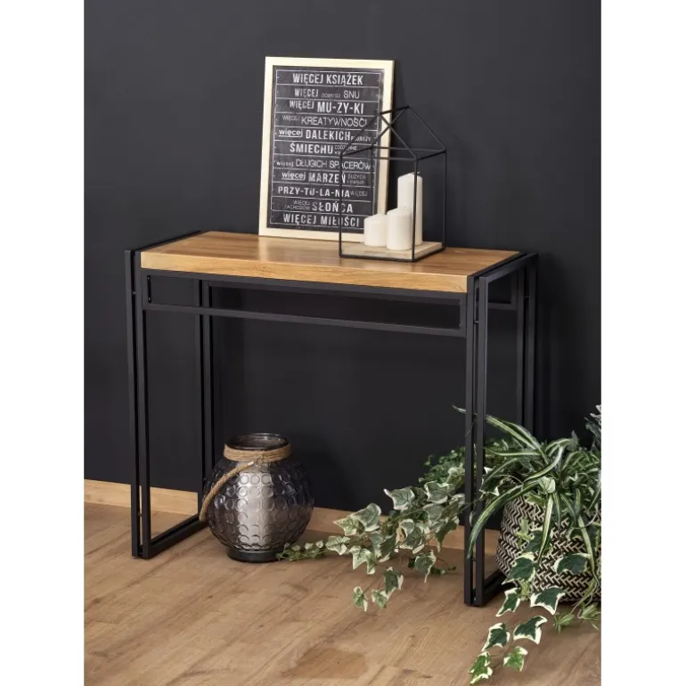 Oplev den perfekte kombination af stil og funktionalitet med vores BOLIVART KN1 konsolbord. Dette bord er designet til at passe ind i ethvert moderne hjem eller kontor, med en elegant gylden egetræsfinish og en robust Sort pulverlakeret stålramme. Med dimensionerne 90/35/76 cm tilbyder det tilstrækkelig plads til dine væsentlige ting, samtidig med at det optager minimal plads i rummet. Laminat MDF sikrer holdbarhed og langvarig brug, hvilket gør det til et ideelt valg for dem, der søger både kvalitet og æstetik.