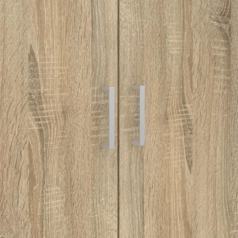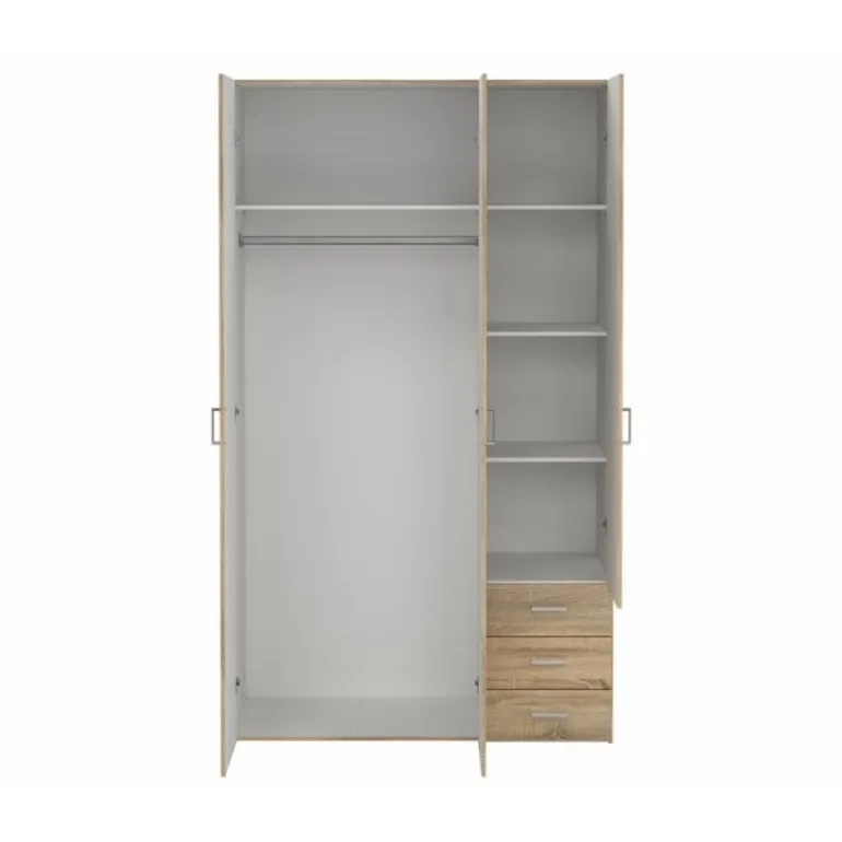 Bolmen garderobeskab i egstruktur med 3 skuffer, 1 bøjlestang, 3 korte hylder & 1 lang hylde.