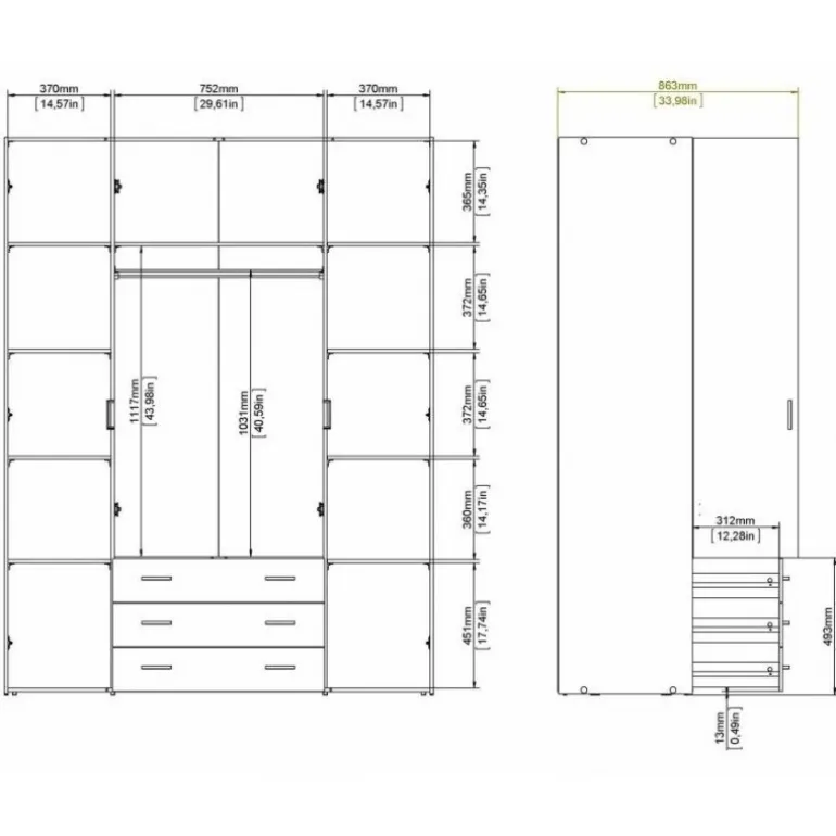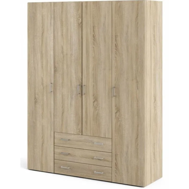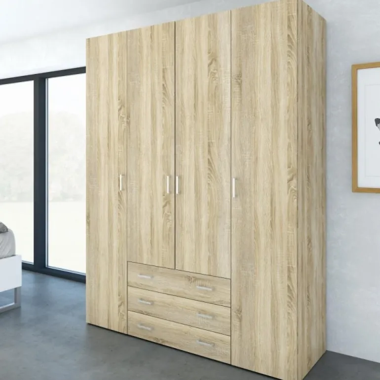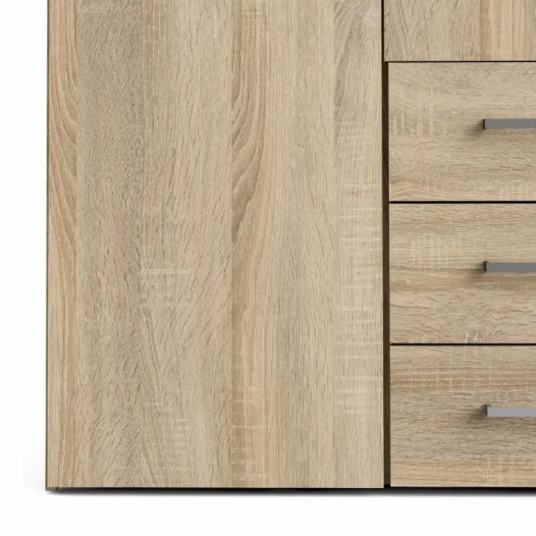 Bolmen garderobeskab i egstruktur med 3 skuffer, 1 lang bøjlestang, 8 korte hylder & 1 lang hylde. Enkelt og stilrent klædeskab med masser af opbevaringsplads der vil passe ind i alle indretninger.