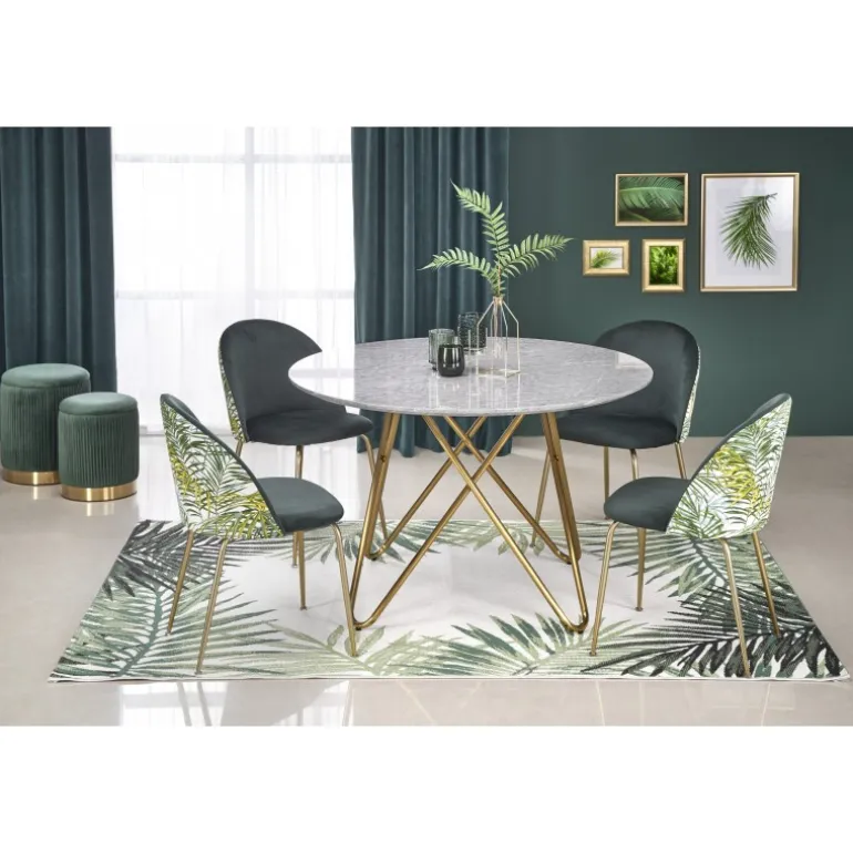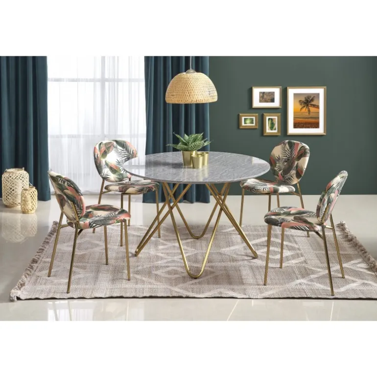 Oplev den elegante BONELLO bord med sit sofistikerede design og moderne æstetik. Dette bord kombinerer holdbar lamineret MDF med stilfuldt kromstål, hvilket sikrer både funktionalitet og skønhed. Den grå marmor top giver et luksuriøst touch, mens de gyldne ben tilføjer en eksklusiv finish. Perfekt til både spisestuer og arbejdsområder, og med en diameter på 120 cm og en højde på 76 cm, passer det ind i de fleste rum. Med BONELLO bord får du en kombination af stil og kvalitet, der vil løfte dit hjems indretning.