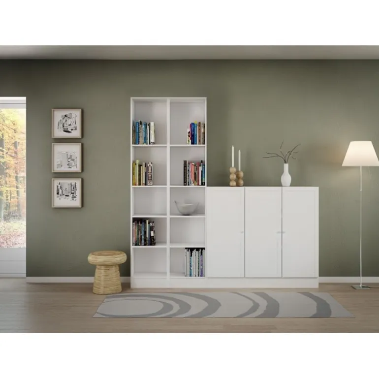 Bookie er reolen til alle husets rum og fås i flere størrelser og farver. Bookie reolerne har flytbare hylder og der er mulighed for at sætte solide fronter eller glaslåger på. Her får du et flot skab der kan bruges som vitrine i stuen, til opbevaring på kontoret, i entréen, på værelset eller andre steder.