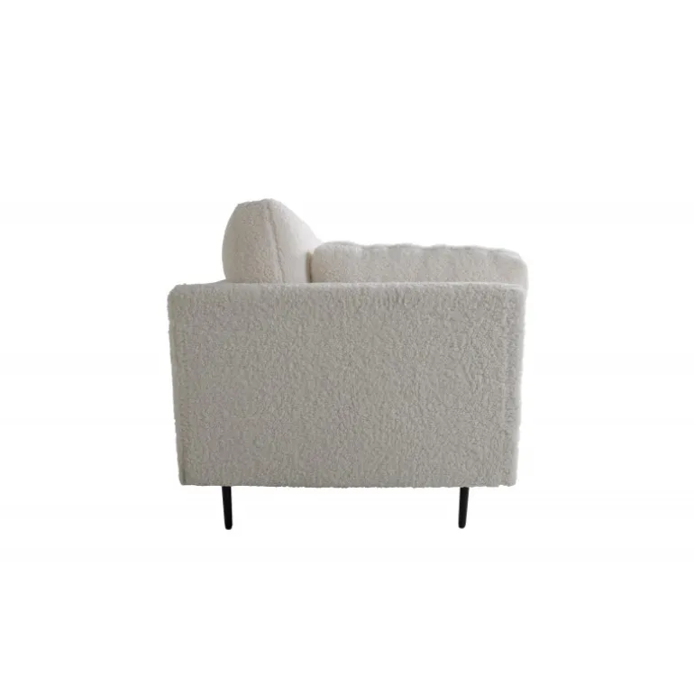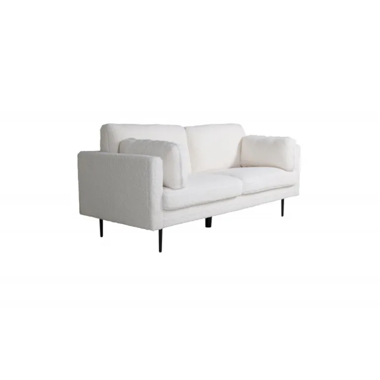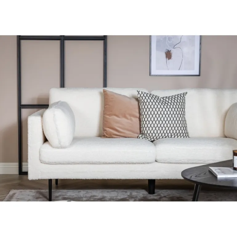 Hvad er en sofa-drøm, hvis ikke denne stilfulde og moderne 2-3 sæders sofa i blød, hvid teddy? Vores komfortable sofa i Boom-serien skaber en utrolig varm og indbydende følelse for dit hjem og vil helt sikkert forlænge dine sofa-momenter. Designet er tidløst med lige nordiske former og smalle metalben i sort. Plejeråd: Teddy-betræk behøver ikke at være så bemærkelsesværdige at vedligeholde. Her er vores tips! Fjern pletter med det samme, gnid ikke, men forsøg at suge forsigtigt op med en klud. Hvis pletterne ikke går væk, prøv en pletfjerner, som du først har testet på en mindre synlig del af stoffet.