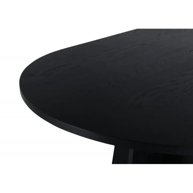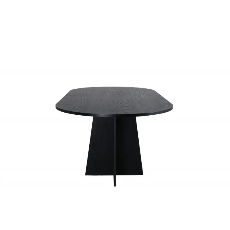 - Unikt design: Oval bordplade i sort MDF med finer.