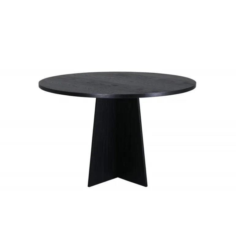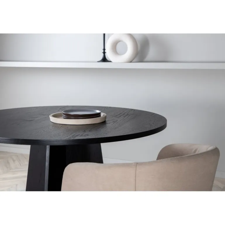 Bootcut, vores familievenlige runde spisebord i konsekvent sort farve, med en bordplade i MDF med finer og et designrigt stel, der giver et lækkert indtryk til det samlede billede. Den tidløse sorte farve giver rummet et trendy og frækt udtryk, der holder over tid. Her får du et moderne og charmerende spisebord, der passer ind i de fleste hjem og husholdninger. Inviter til mange hyggelige måltider fremover – ingen ender på kanten her!