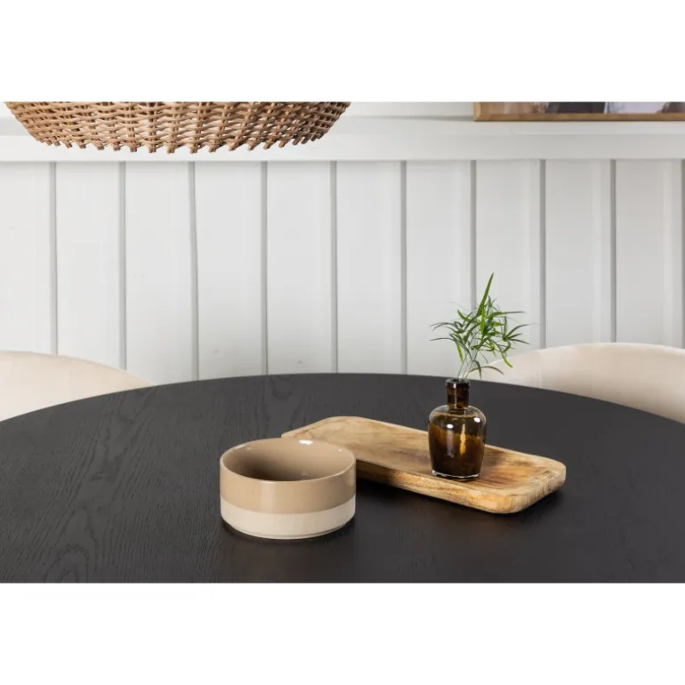 - Rundt spisebord i sort med MDF-bordplade og finer