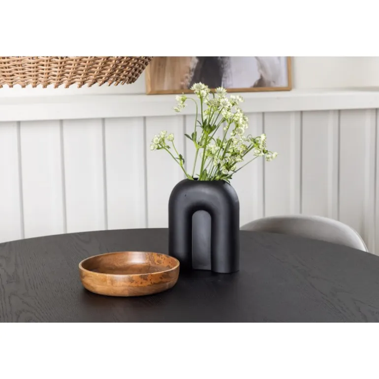 - Rundt spisebord i sort MDF med finer