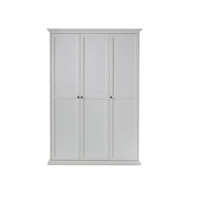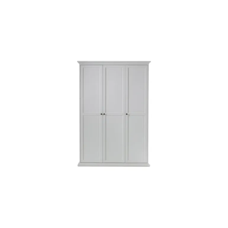 Bordeaux klædeskab i hvid med 3 låger. Inde i skabet er der 1 bøjlestang, 1 bred hylde samt 4 smalle hylder.
