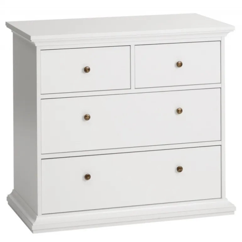 Bordeaux-serien er en komplet designet møbelserie, der skaber varme, ro og rene omgivelser med sin gennemgående hvide farve – og skønne romantiske detaljer. Alle skuffer og låger har metalgreb, der understøtter den romantiske stil.