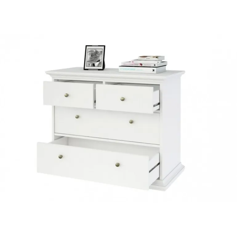Bordeaux kommode med 4 skuffer hvid med metaludtræk.
