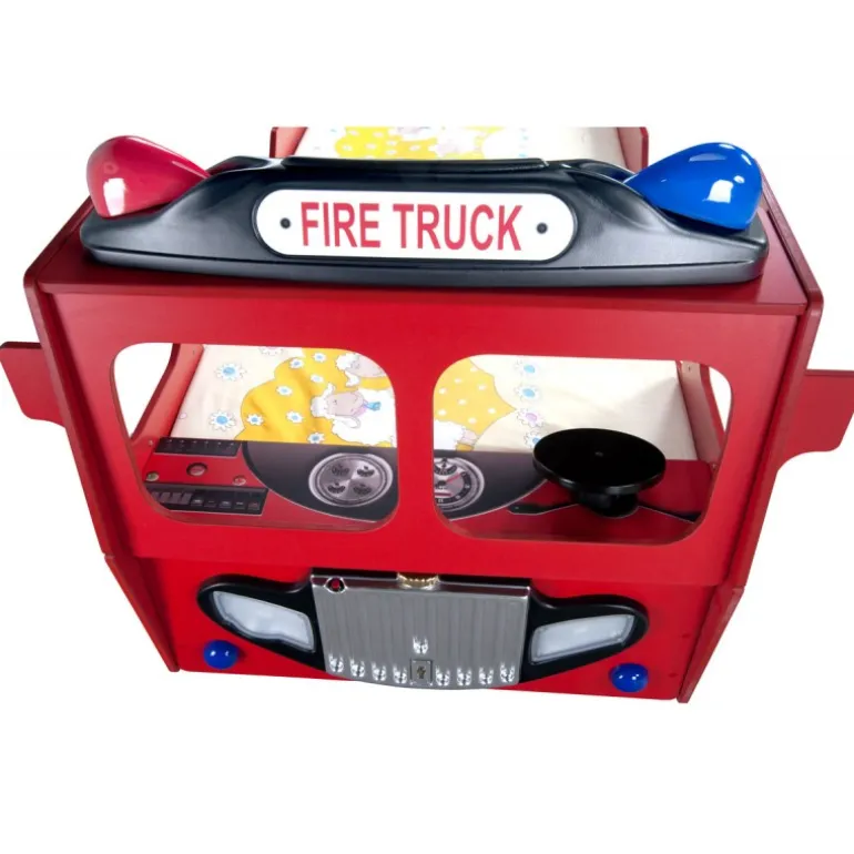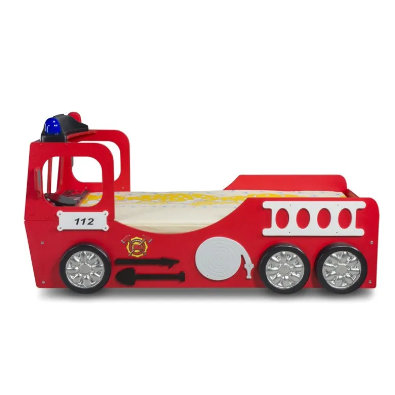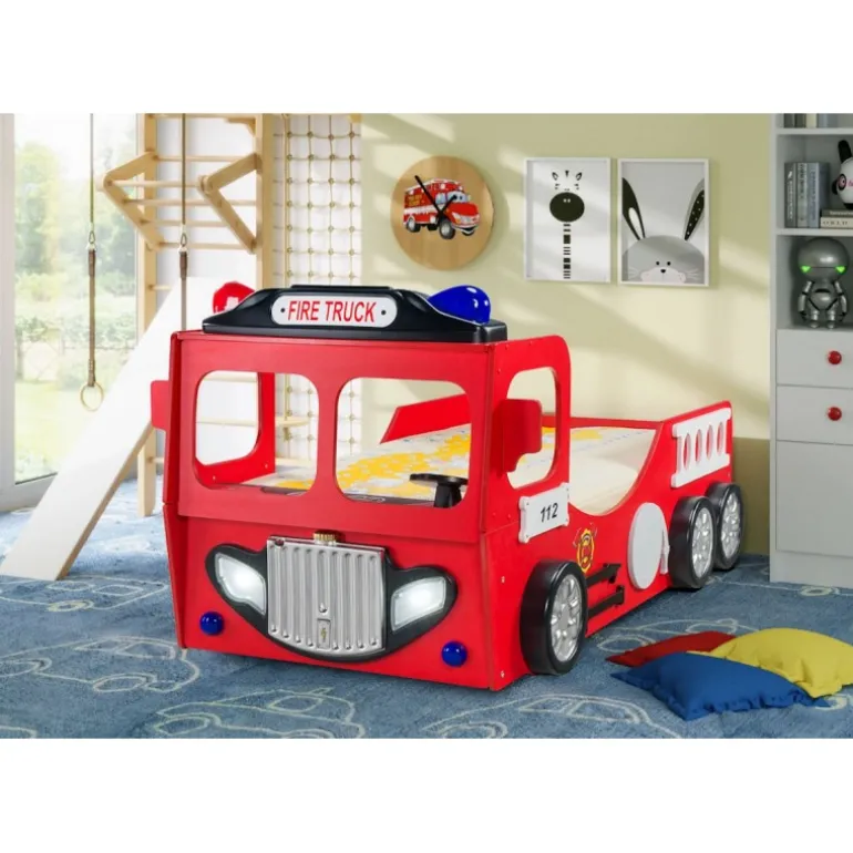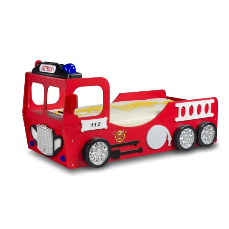 Gør drømmen om at blive brandmand til virkelighed med denne fantastiske børneseng formet som en brandbil! Sengen er udstyret med LED-lys og lavet af lamineret plade, som er fuldstændig børnesikker og nem at rengøre. En ideel kombination af leg, komfort og sikkerhed.