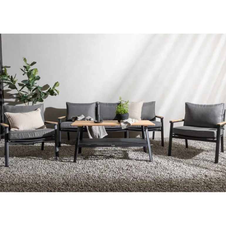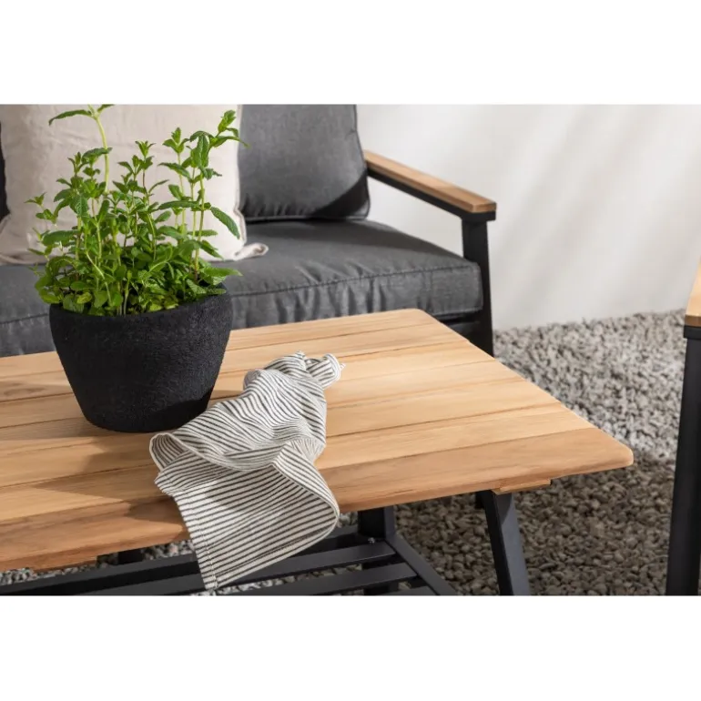 - Holdbare materialer: Pulverlakeret metal og teak til langvarig brug.