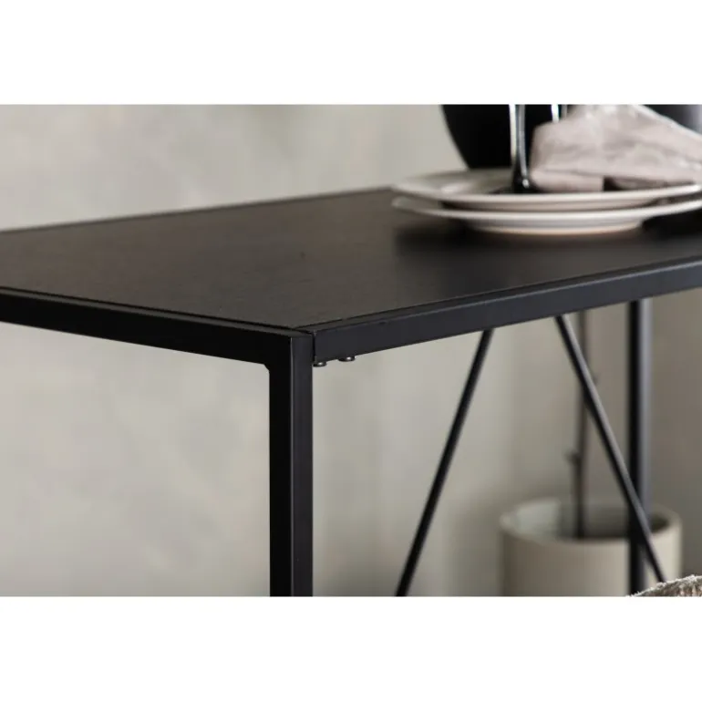 Giv køkkenet et løft med et slankt barbord fra Brea-serien! Dette barbord tilhører Venture Home-kollektionen og har et trendfast, skandinavisk design i et minimalistisk udtryk. Bordpladen er stilfuldt tynd i sort MDF med en smal ramme i sort stål. Match med et par lækre barstole, og du får en komplet Spisebordssæt i moderne stil!