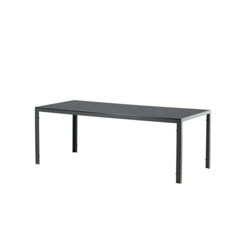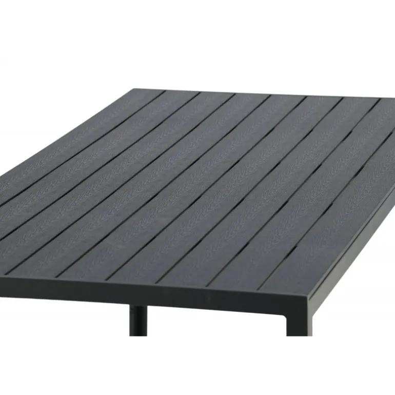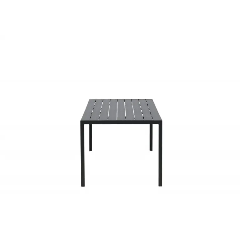 Smart, pænt og holdbart – et rektangulært spisebord med alt, hvad du behøver! Break har lige former i klassisk nordisk design med en bordplade i sort polywood og aluminiumsben. Materialerne er både holdbare og lette, så du nemt kan flytte rundt på bordet, hvis det er nødvendigt. Gør dig klar til sommernætterne og nyd måltider udendørs! Plejeråd: Udendørsmøbler i aluminium og rustfrit stål skal rengøres regelmæssigt med vand og mild sæbe. Skyl altid grundigt med rigeligt vand, hvilket er ekstra vigtigt, hvis møblerne er placeret tæt på havet, hvor salt kan transporteres gennem luften.