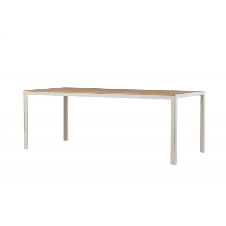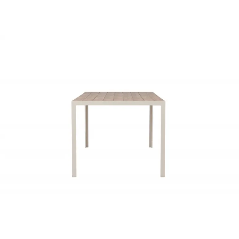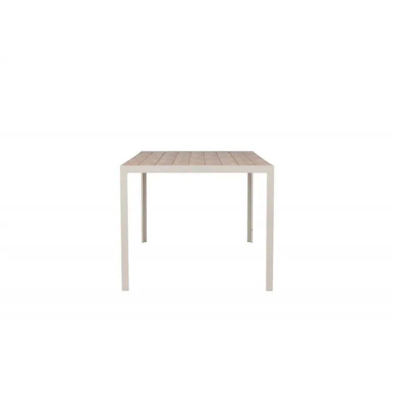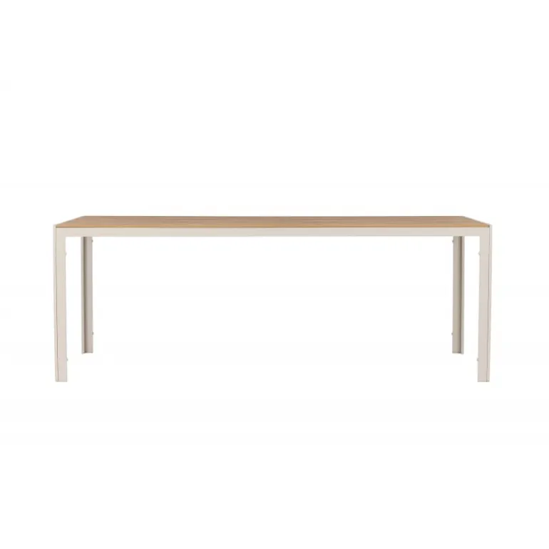 Oplev Break udendørs spisebord – det perfekte valg til din udendørs spiseoplevelse! Med sine generøse dimensioner på 205×90 cm tilbyder Break udendørs spisebord masser af plads til at nyde god mad og behageligt selskab udendørs. Uanset om du har en terrasse, have eller patio, vil dette bord være en imponerende og funktionel tilføjelse til dit udendørs miljø. Break bordet udstråler stil i sin beige farve, hvilket giver en frisk og moderne følelse til din udendørs indretning. Den neutrale nuance gør det nemt at matche bordet med forskellige stole og puder for at skabe din egen unikke stil. Bordets bordplade har et elegant teak-look, der giver en naturlig og varm atmosfære. På trods af sin æstetiske charme er bordet også holdbart og let at vedligeholde. Den robuste teak-look bordplade er vejr- og vindbestandig, så du kan nyde dit bord år efter år. Break udendørs spisebord kombinerer stil, funktionalitet og holdbarhed for at skabe en optimal udendørs spiseoplevelse. Uanset om du planlægger en afslappet familiemiddag eller en festlig grillfest, vil dette bord være det perfekte samlingspunkt. Opgrader dit udendørs område med Break udendørs spisebord. Giv dig selv og dine gæster et vidunderligt sted at nyde måltider og skabe minder. Bestil dit Break udendørs spisebord i dag og forvandl dit udendørs område til en elegant og funktionel oase!