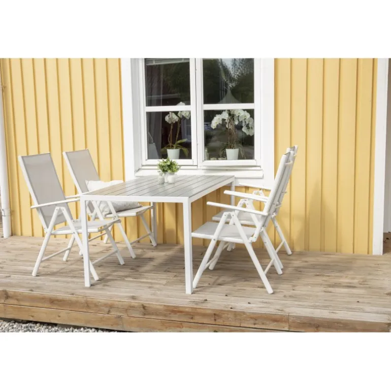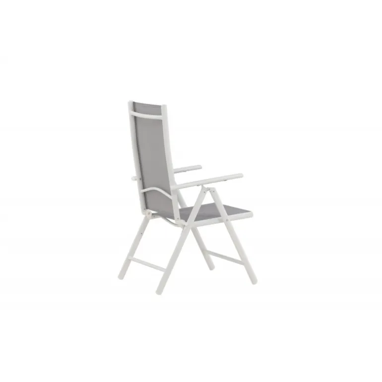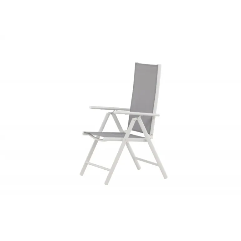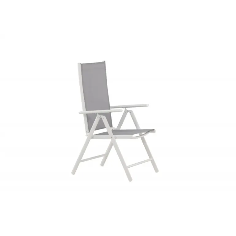 Sid afslappet denne sommer og nyd dejlige måltider udendørs! Break er en glat sammenklappelig stol i tidløs grå farve, der passer til de fleste terrasser. Stolens 5-positionstilstand og armlæn gør den meget komfortabel og anvendelig, både som spisebordsstol og til afslapning. Indret rundt om et matchende spisebord og inviter til mange sociale stunder. Plejeråd: Textilene er et syntetisk stof lavet af PVC-behandlet polyester. Materialet er vandafvisende og UV-behandlet for at modvirke solens blegning. Rengøring bør udføres cirka en gang om måneden, brug en fugtig klud og tør af.