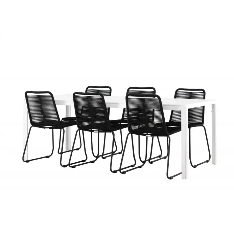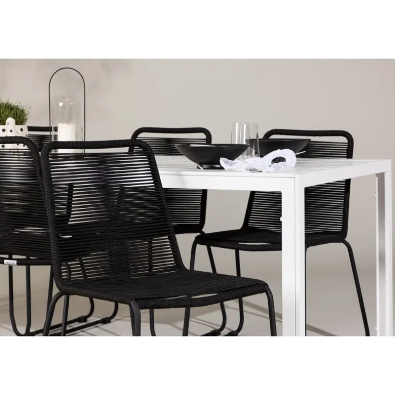 - Elegant design: Moderne og stilfuldt udseende med sorte Lindos stole og hvidt Break bord.