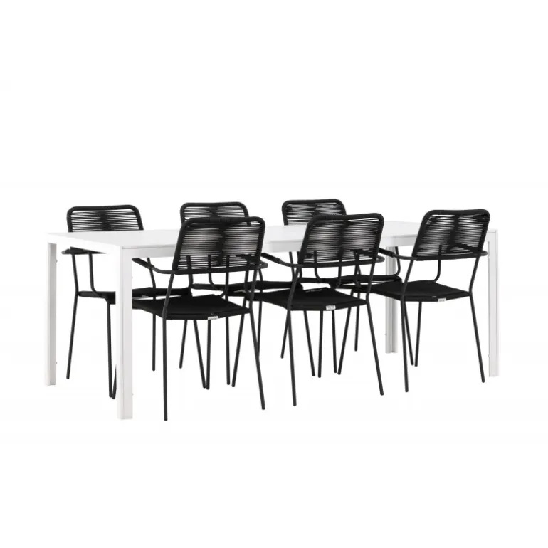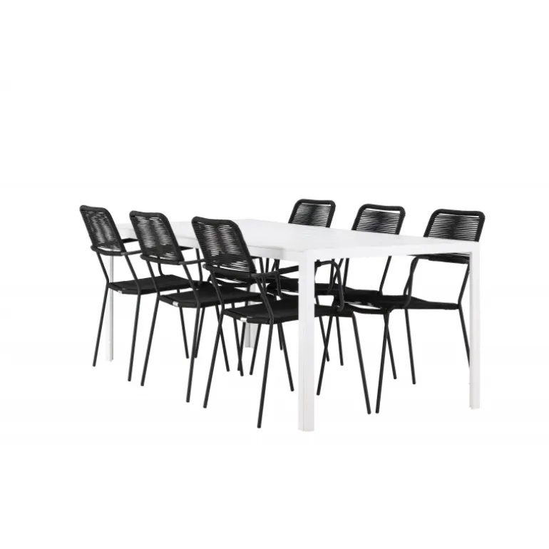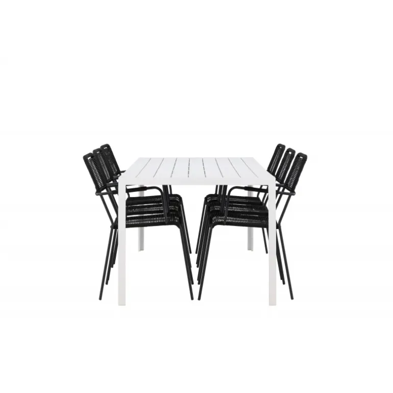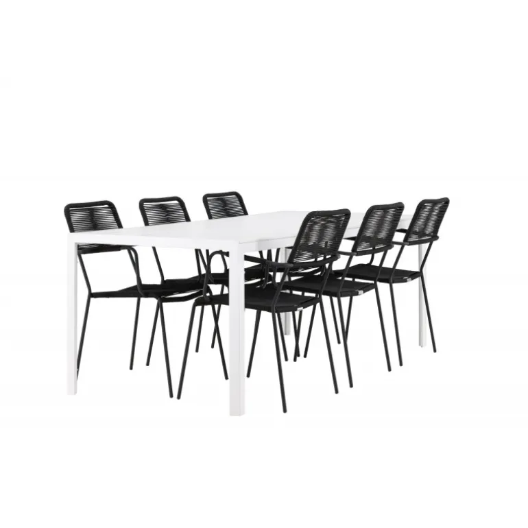 Udforsk den perfekte kombination af stil og funktionalitet med vores eksklusive Loungesæt – Havemøbelsæt, komplet med seks elegante Lindos-stole og det stilfulde Break-bord. Med dette fremragende ensemble kan du skabe en indbydende atmosfære til sammenkomster med venner og familie i dit udendørsområde. Lindos-stolene, klassisk sorte og designet til at modstå udendørs brug, er både elegante og robuste. Sæderne er lavet af holdbart rebmateriale og har en stålramme, hvilket giver en perfekt balance mellem stil og komfort. Break-bordet, med sin strålende hvide farve og generøse dimensioner på 205×75 cm, er det perfekte midtpunkt til dine udendørs måltider og sammenkomster. Bordpladen er lavet af aintwood for at give en varm og indbydende følelse, mens den elegante aluminiumsbase sikrer langvarig brug. Uanset om det er en afslappet grill aften med venner eller en festlig middag med familien, vil vores Loungesæt – Havemøbelsæt med Lindos-stole og Break-bord skabe en tidløs og velkommende atmosfære til alle lejligheder. Nyd hvert øjeblik i selskab med dette gennemførte og stilfulde Loungesæt – Havemøbelsæt.