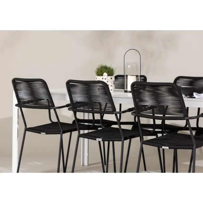 - Elegant design: Lindos-stole i klassisk sort og Break-bord i strålende hvid.
